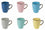 Set aus 4 farbigen Tassen mit weißem Kaleidos-Steinzeug-Milchkännchen