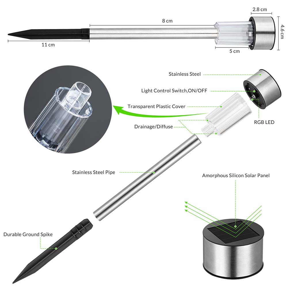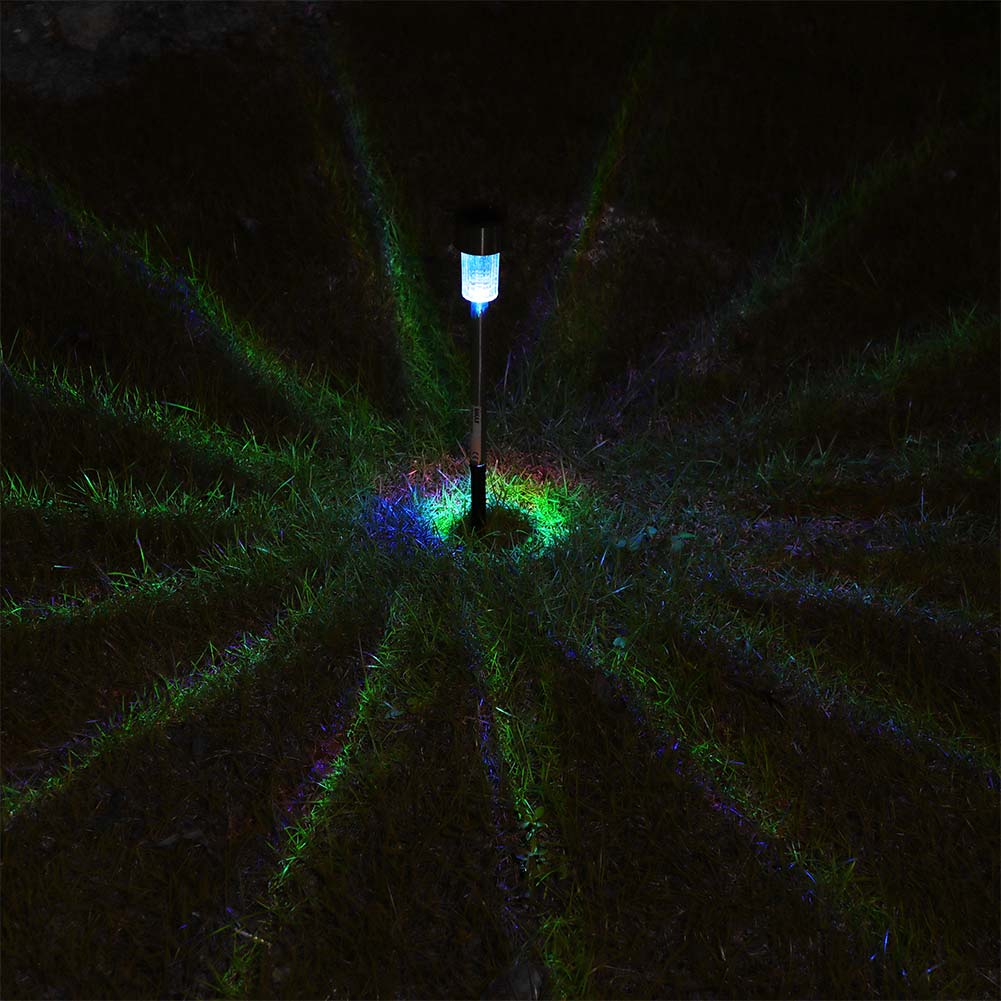 Dona un tocco unico agli ambienti esterni di casa tua con questo bellissimo set di 10 lampade solari RGB.