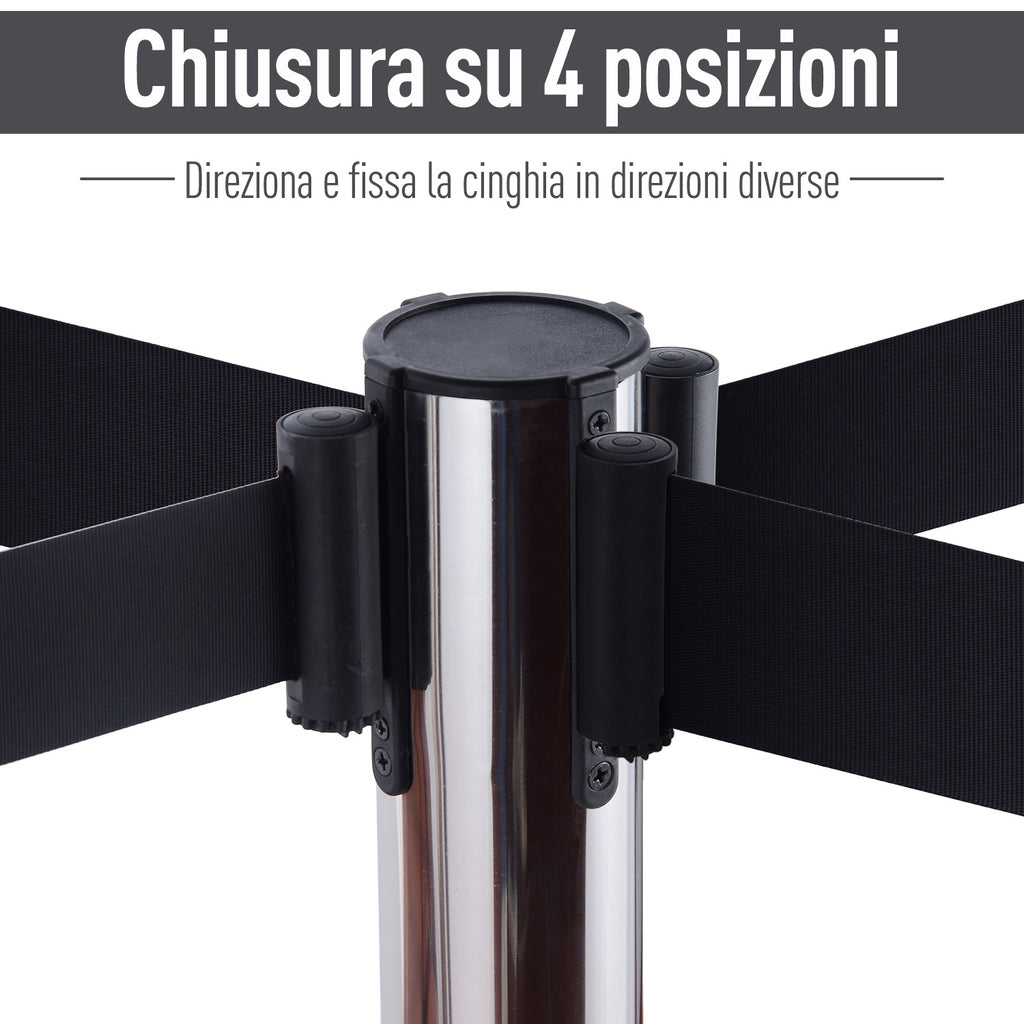 - Jeder Pfosten ist mit einem ausziehbaren Band ausgestattet, um zwei Pfosten zu verbinden