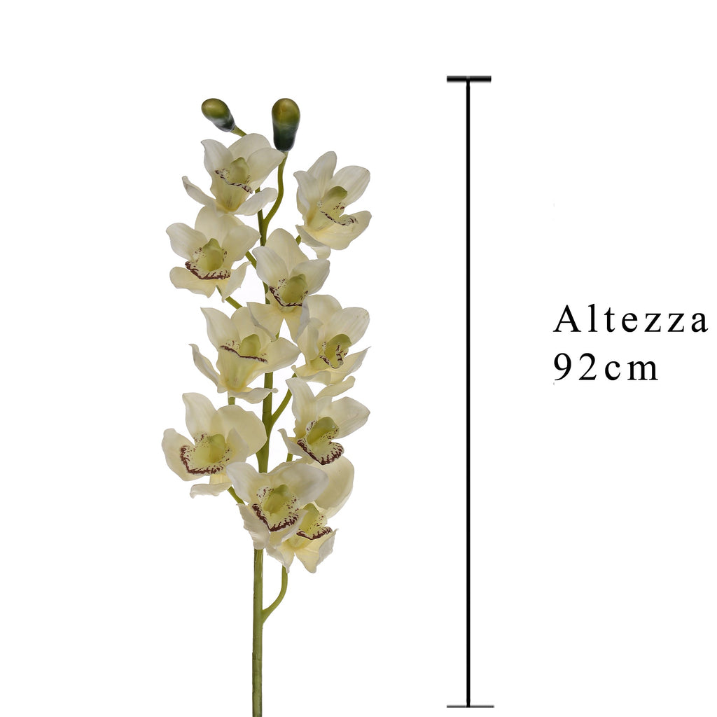 Set 2 Real Touch Künstliches Cymbidium mit 10 Blüten und 2 Knospen Höhe 92 cm Weiß
