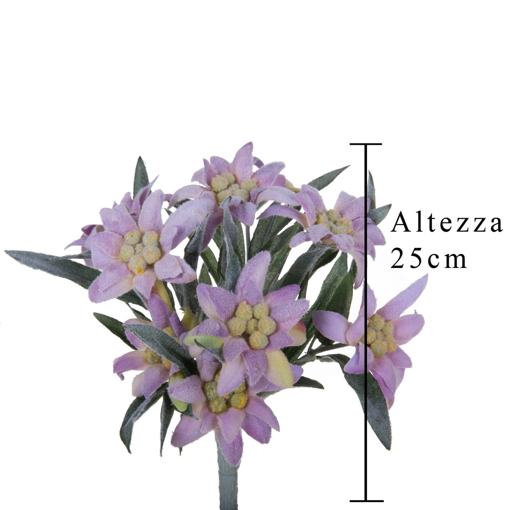 Set 2 künstliche Edelweiss-Pflanzen, bestehend aus 9 Blumen, Höhe 25 cm, Rosa