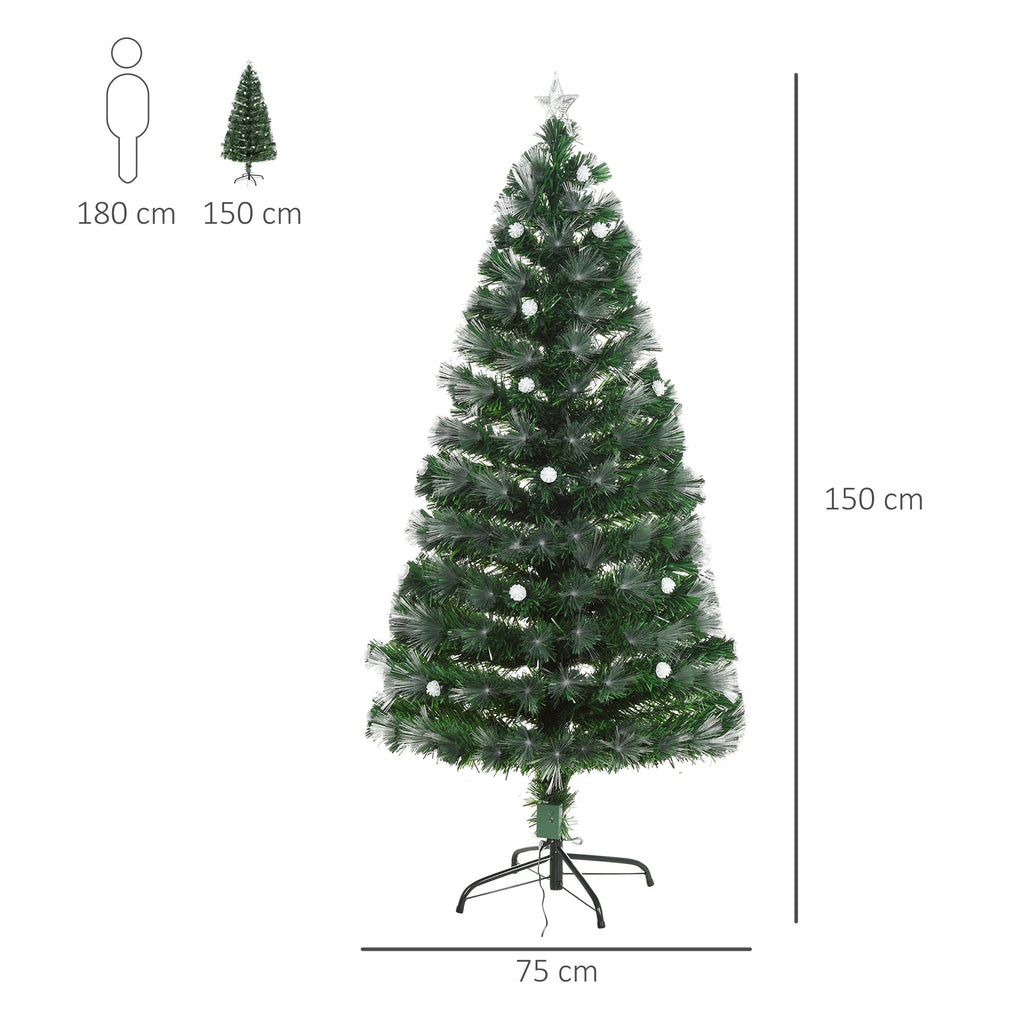 Künstlicher Weihnachtsbaum 150 cm 180 Zweige mit LED-Faseroptik Hellgrüne Kiefer
