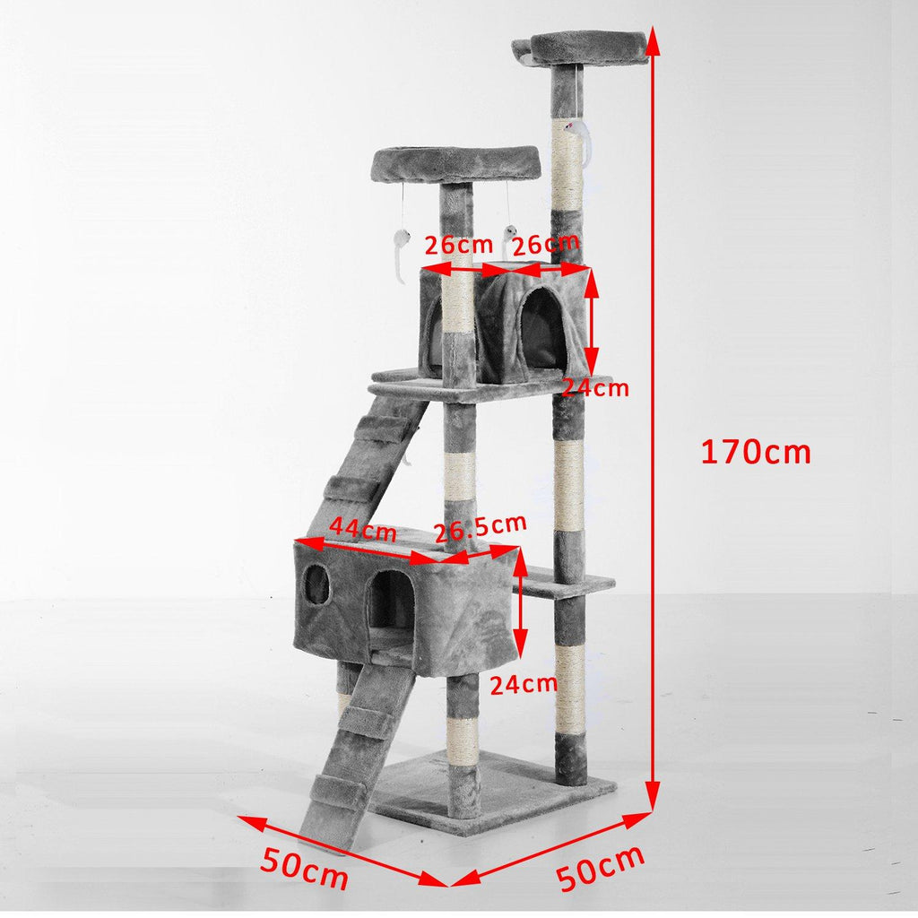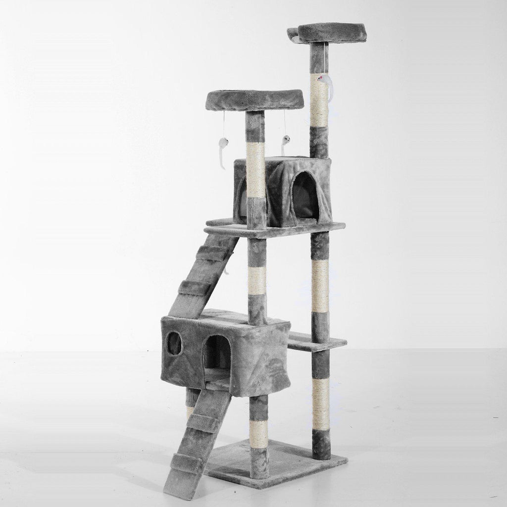 Kratzbaum für Katzen mit zwei Kuschelbetten und grauem Sisal 50x50x170 cm