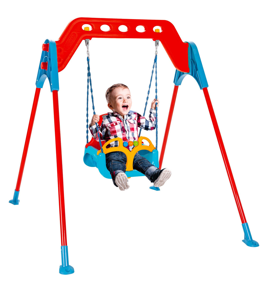 Altalena da Giardino 1 Posto 145x125x136 cm Corde in Metallo Rosso e Blu