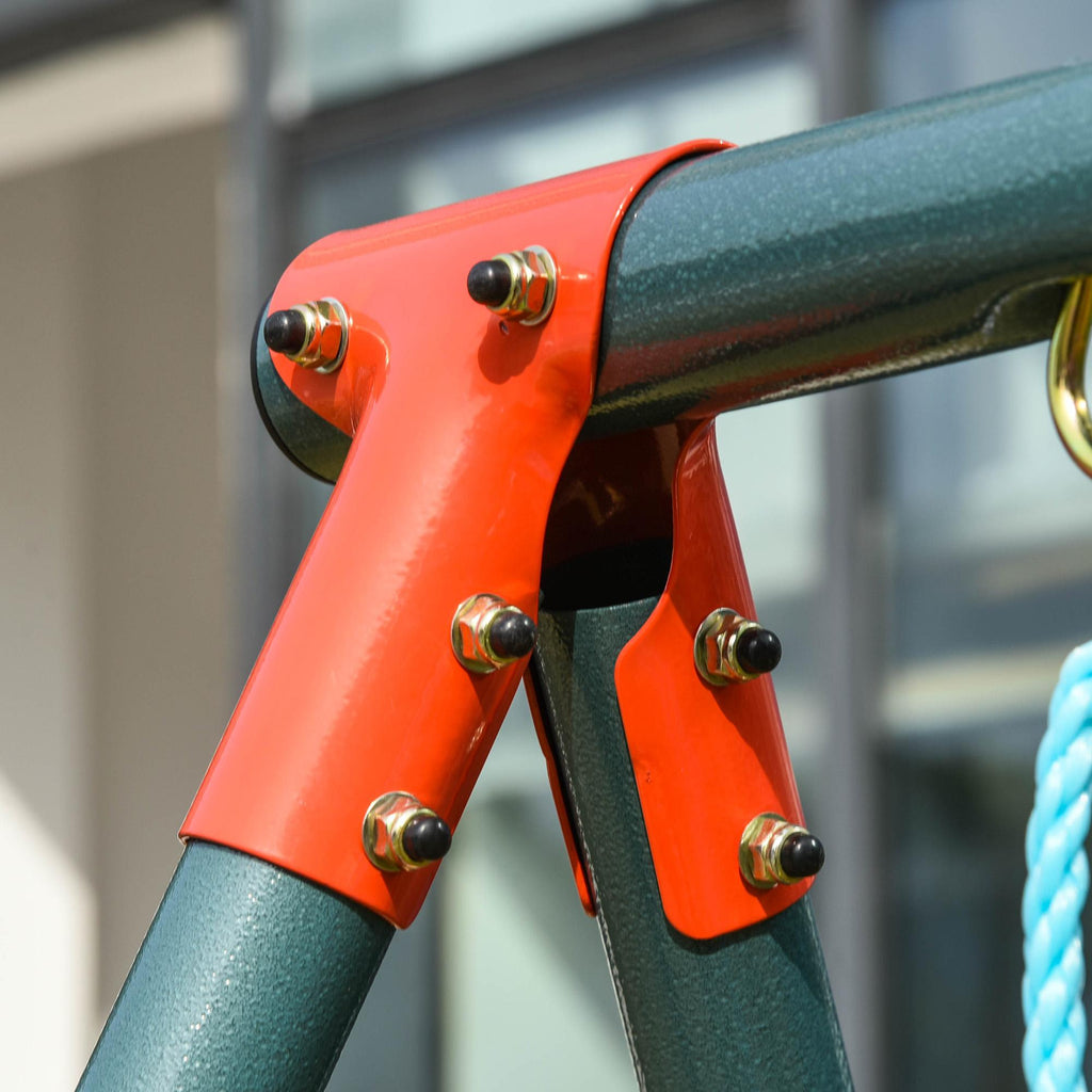 - SOLIDE KONSTRUKTION: Die Struktur besteht aus verstärktem Metall mit Pulverbeschichtung für eine lange Lebensdauer. Der A-förmige Rahmen kann mit 4 Heringen am Boden befestigt werden, um die Stabilität und Sicherheit dieser Kinderschaukel zu erhöhen
