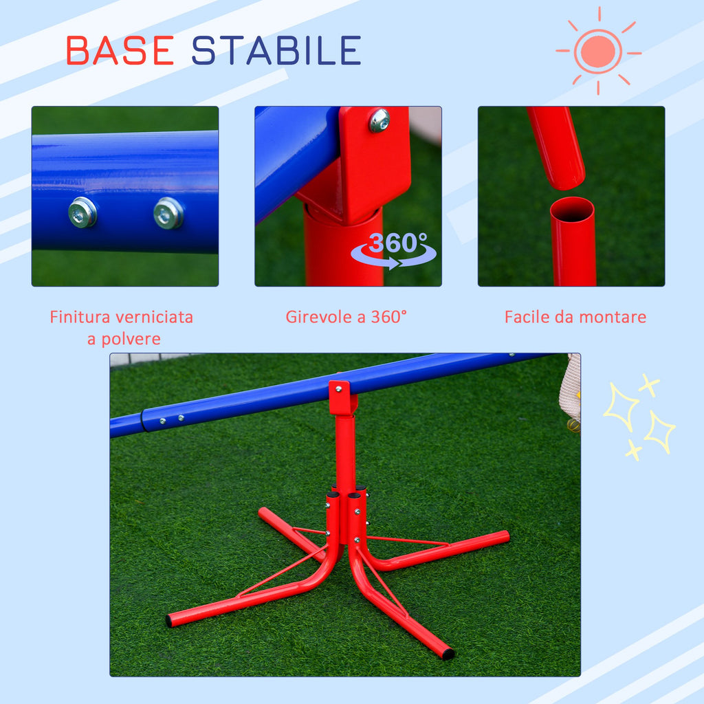 Die Kinderwippe von bietet doppelten Spielspaß für Tage im Freien. Diese Schaukel kombiniert die traditionelle Kippbewegung mit einem 360°-Drehsystem, für Spaß wie auf einem Karussell. Diese Gartenschaukel ist mit einem stabilen pulverbeschichteten Metallrahmen für eine lange Lebensdauer ausgestattet. Die Sitze sind mit einer stoßdämpfenden Stange ausgestattet, die verhindert, dass die Sitze den Boden berühren, um bei jedem Schwung sicher zu landen. Peppen Sie die Outdoor-Spiele Ihrer Kinder mit dieser originellen Doppelschaukel auf!