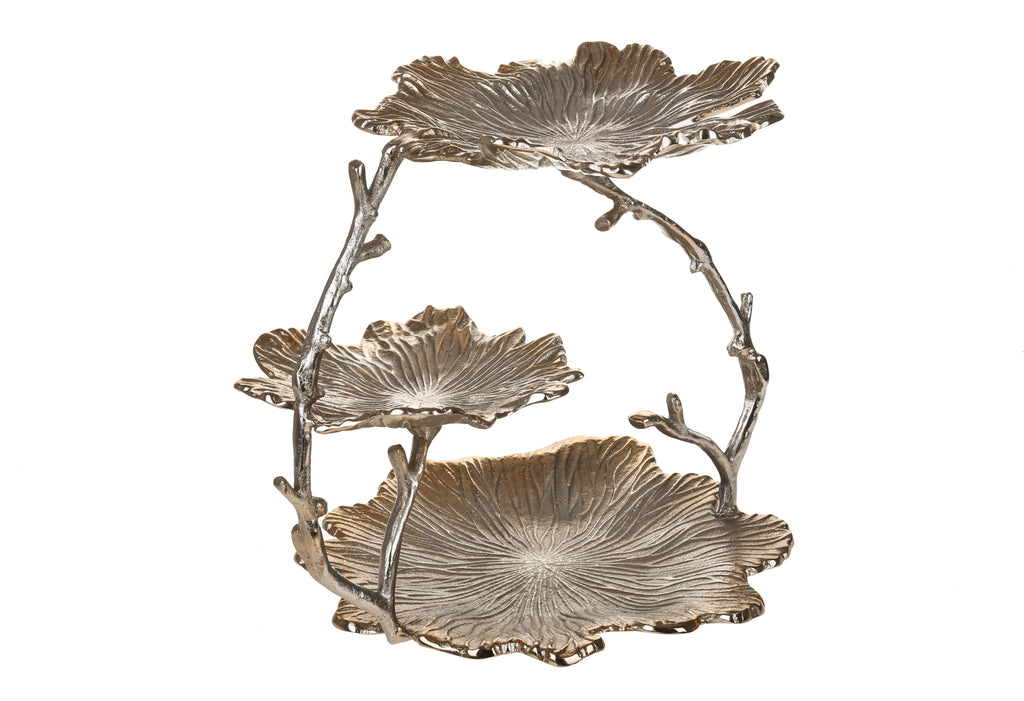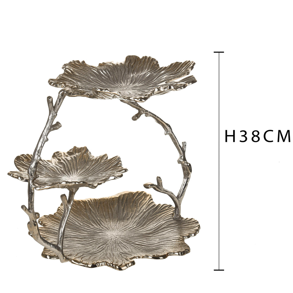 Alzata Con Foglie A 3 Piani. Altezza 38 Cm