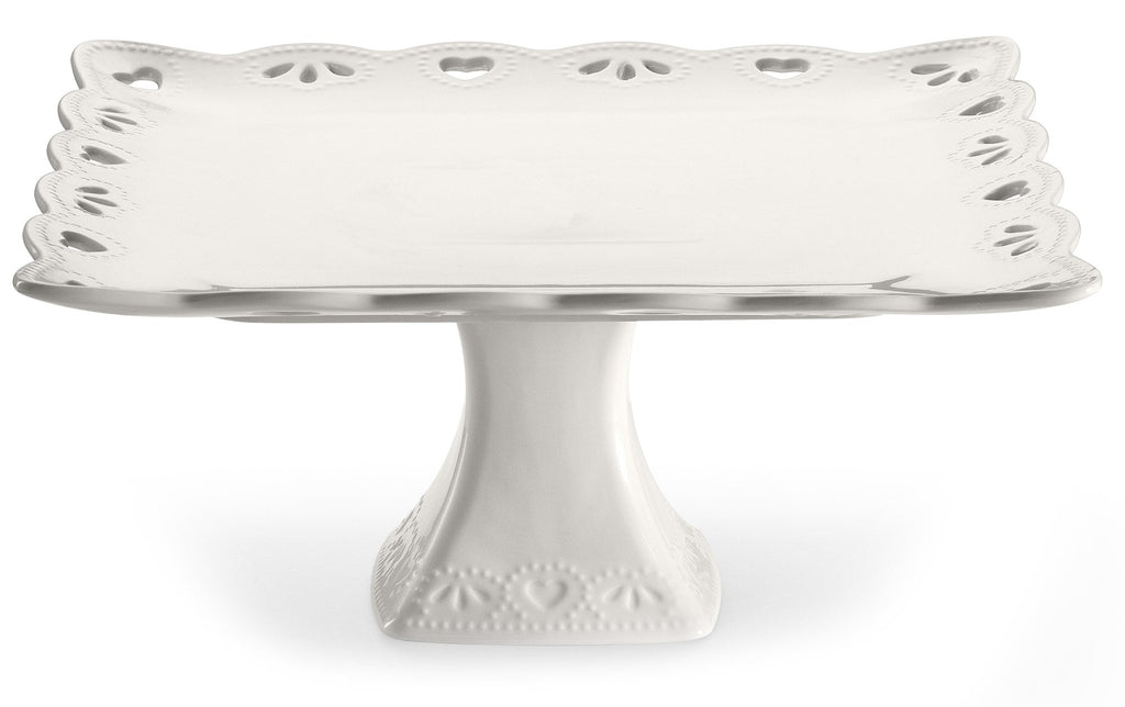 Ständer mit quadratischer Tortenplatte 31x31 cm perforiertes Porzellan Kaleidos Juliet White