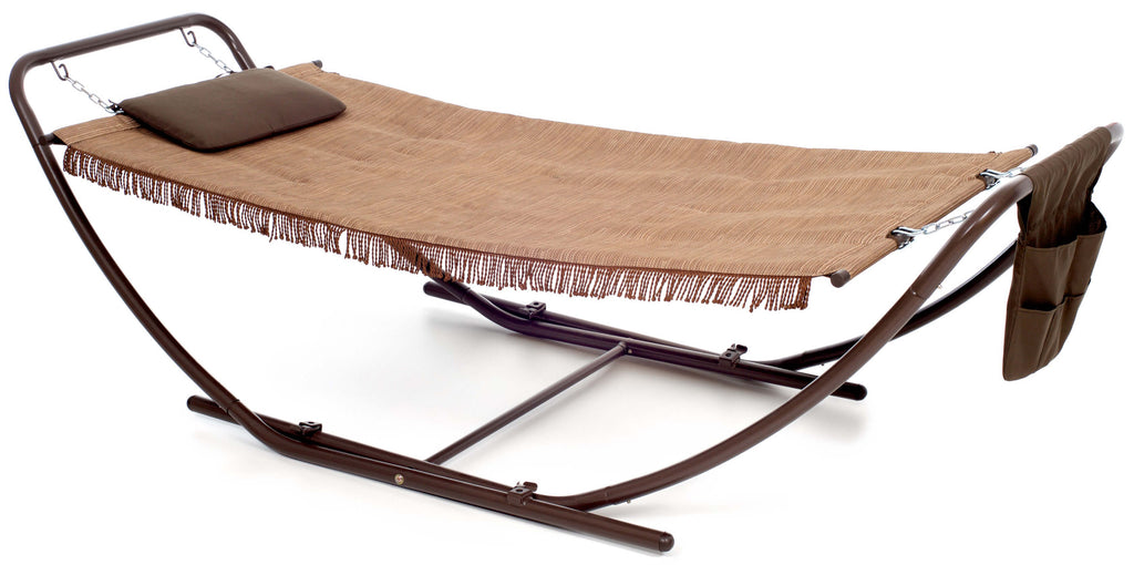 Garten-Hängematte aus Eisen und Polyester mit ecrufarbenem Zanzibar-Kissen