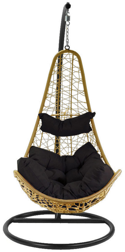 Dondolina Hängematte aus Polyrattan mit Stahlstruktur und wasserdichtem Baumwollkissen.