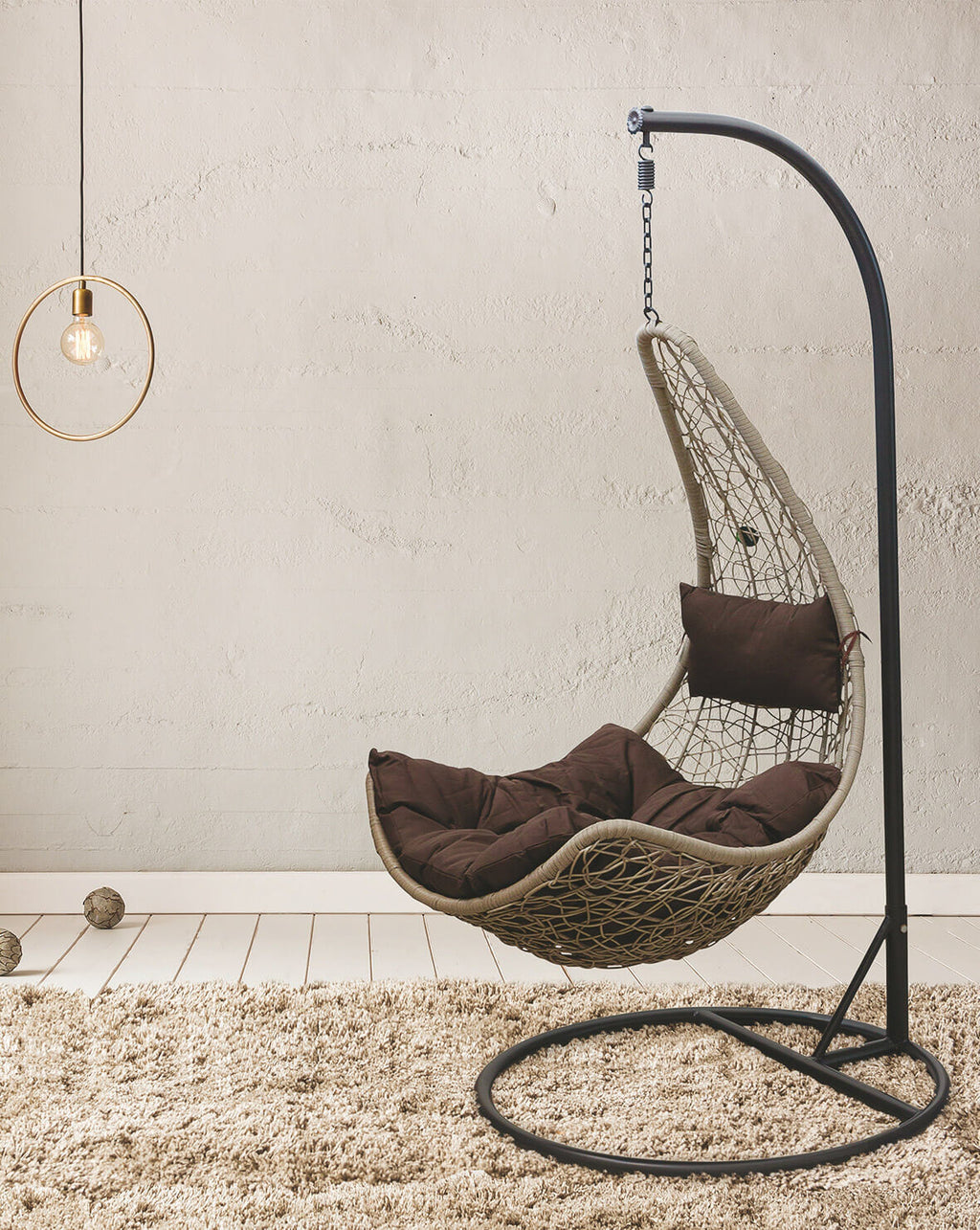 Garden Swing Hängematte aus Metall und Polyrattan Soriani Grey und Brown Drop
