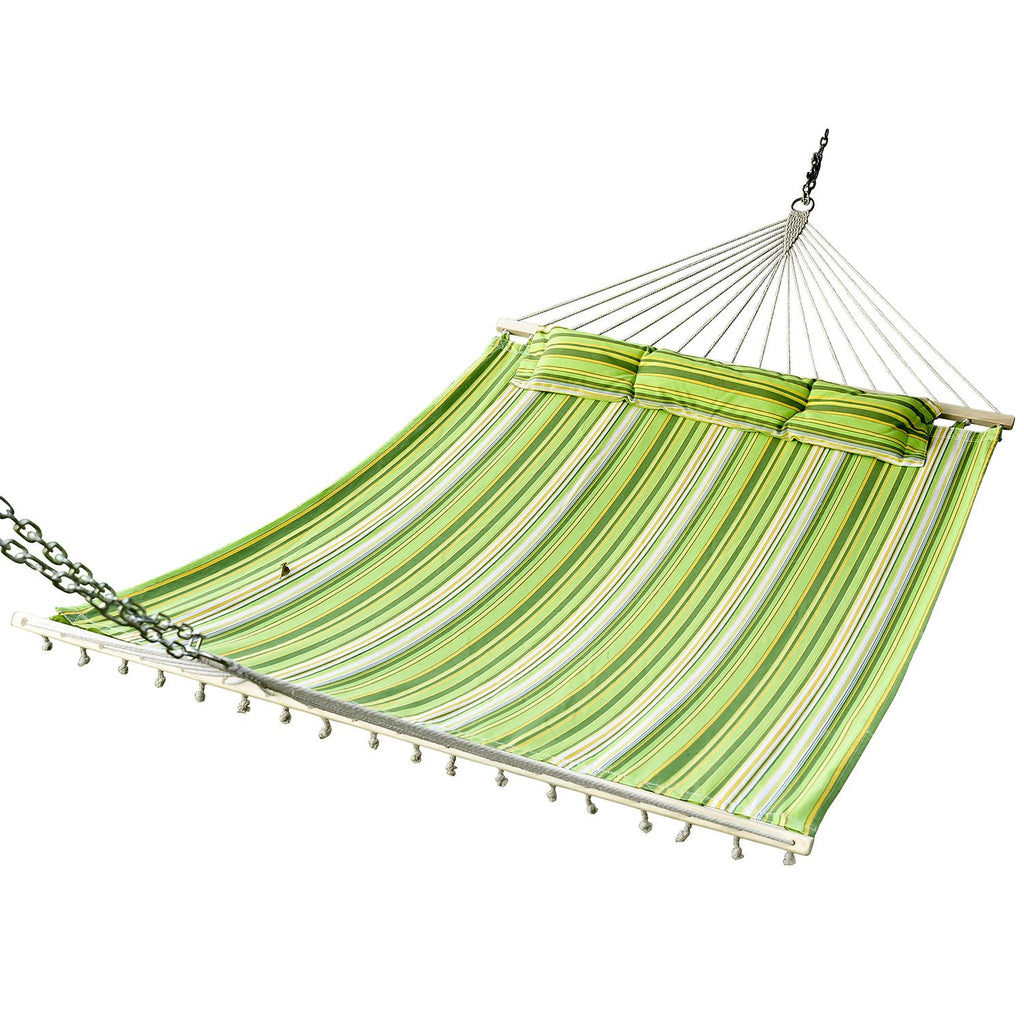 Doppel-Hängematte aus Baumwolle 284 x 140 cm mit grünen, gelben und weißen Streifen