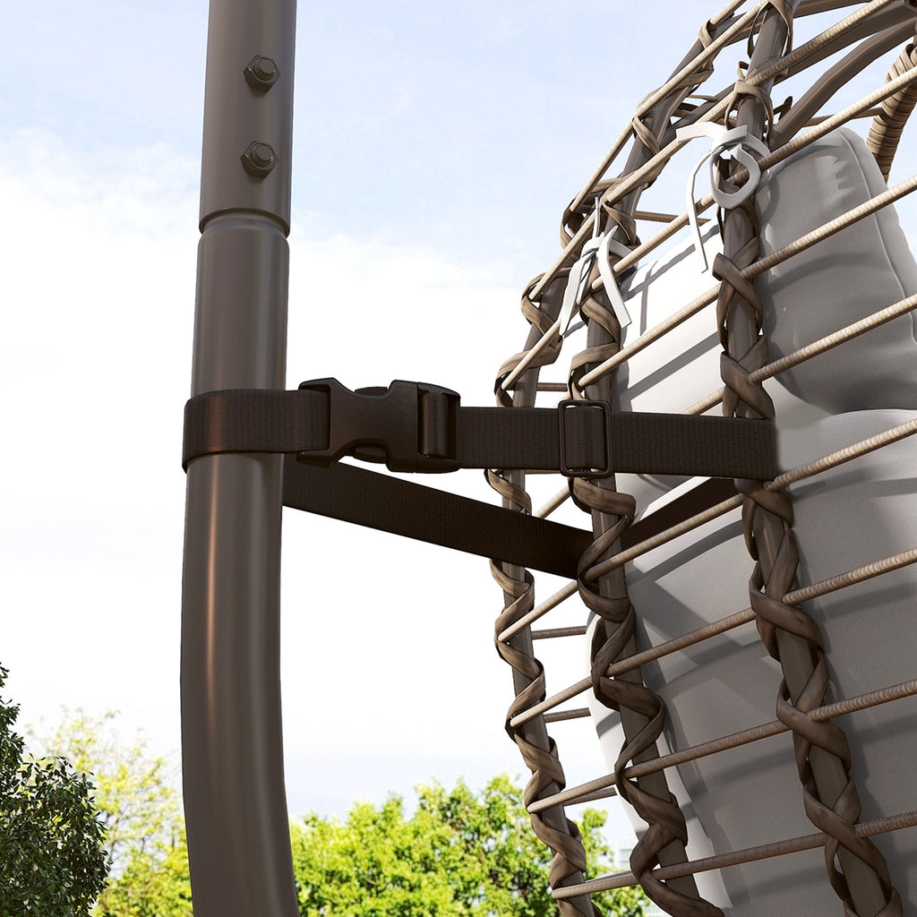 Lasciati avvolgere dalla comodità della sedia sospesa in rattan, la perfetta fusione di stile e comfort. La sua solida struttura in acciaio e la seduta con intrecci in rattan di qualità affronta ogni clima, mentre il cuscino morbido con poggiatesta estraibile assicurano il massimo del relax. Ideale per il giardino o come angolo di pace in casa, la poltrona uovo è regolabile in altezza e pieghevole per massimizzare gli spazi.