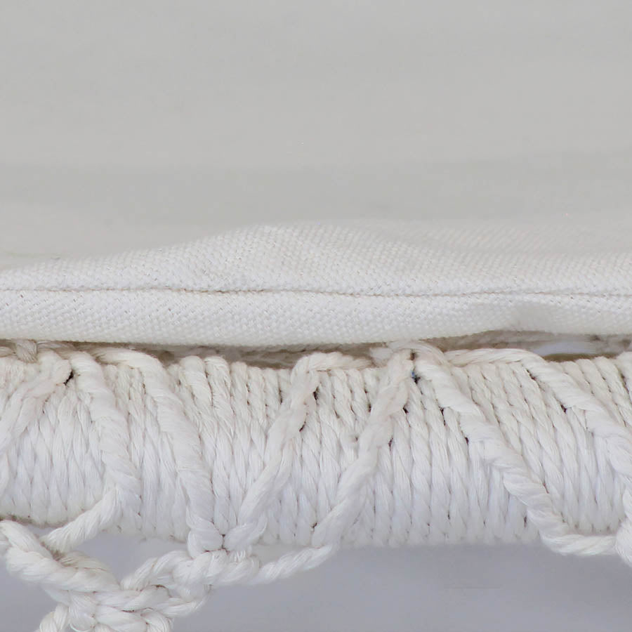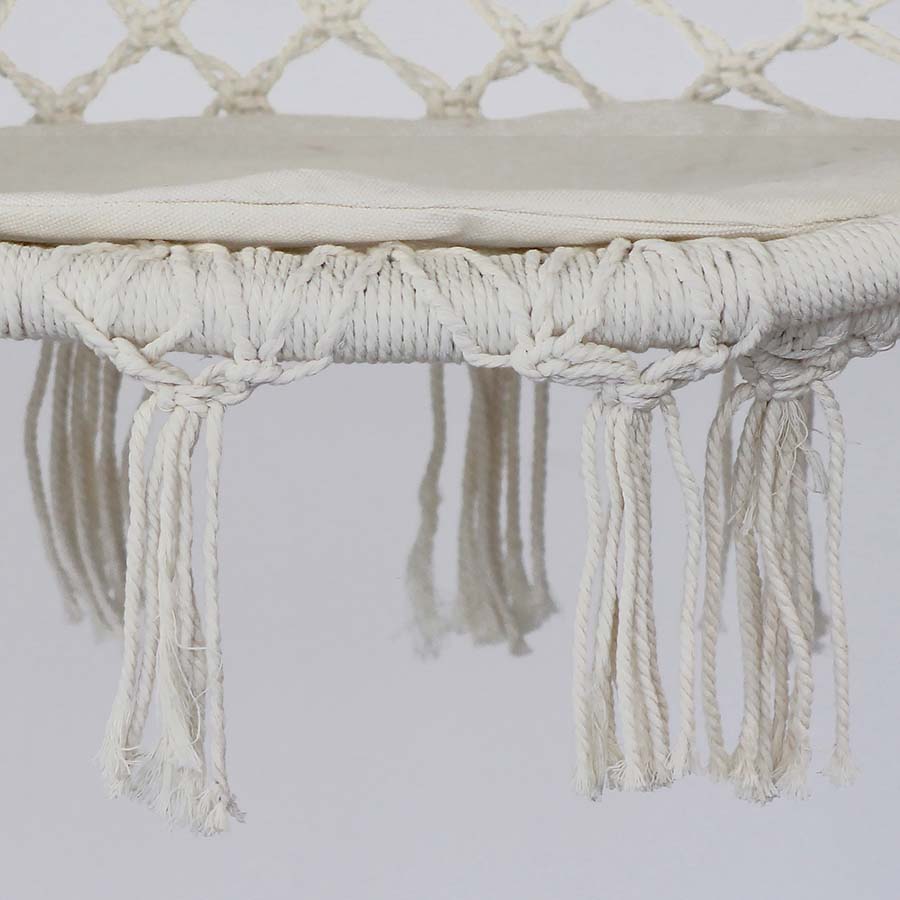 L'amaca da esterno è caratterizzata da una delicata nuance naturale e delle particolari frange.