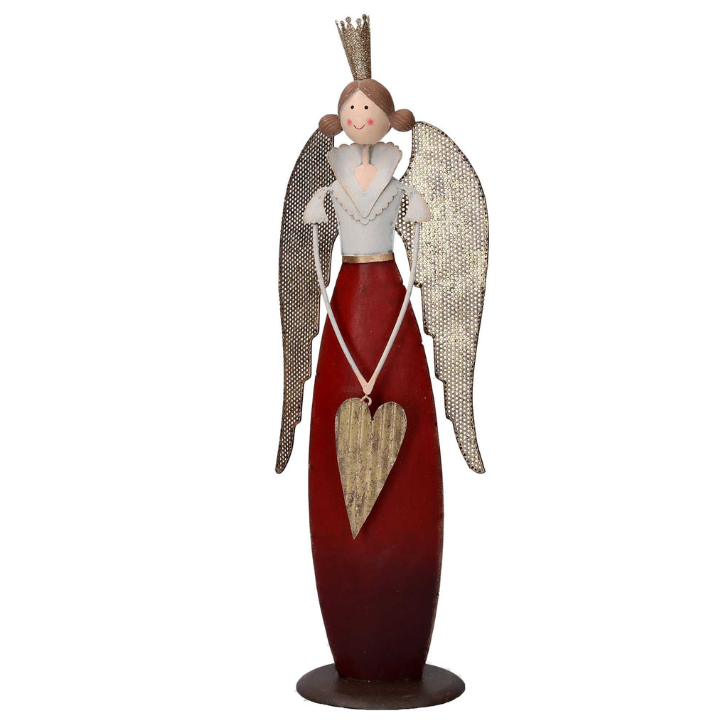 Angelo metallo con cuore oro e rosso cm 14,5x8,5xh45