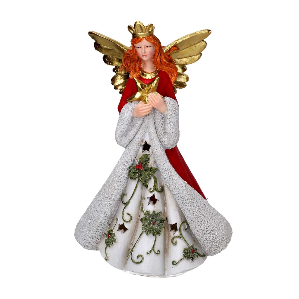 Angelo resina rosso e oro con led cm 18,5x15xh29,5