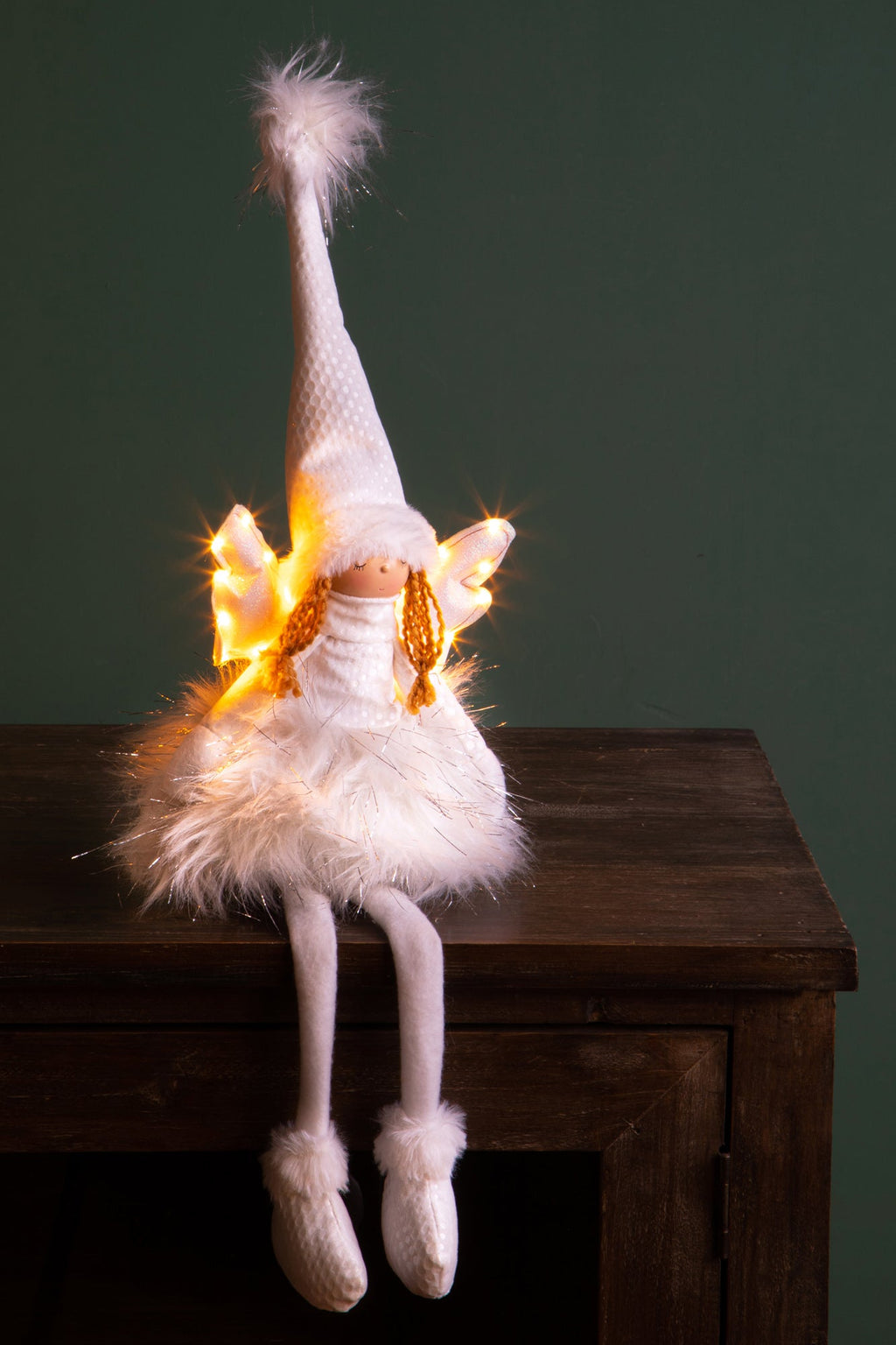 Sitzender Engel mit Led H60 cm aus weißem Stoff