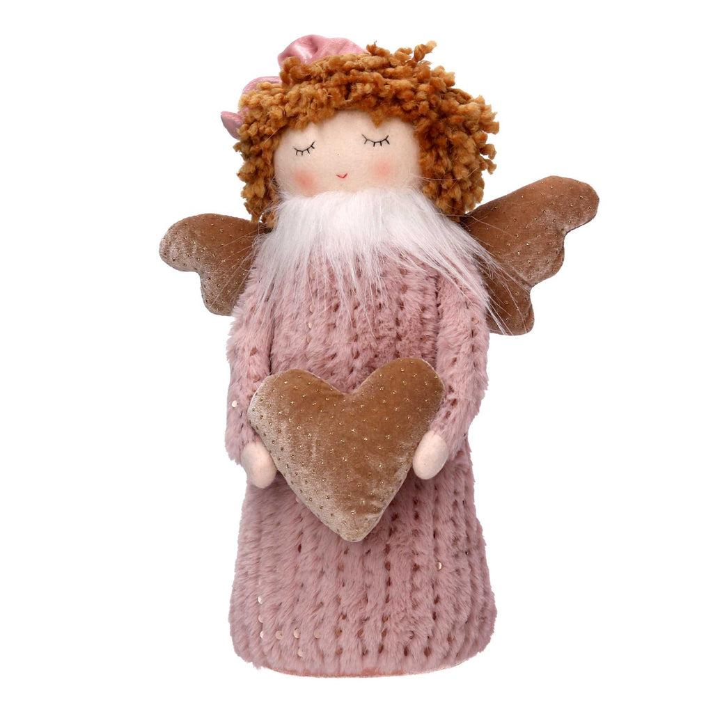 Angelo tessuto rosa con cuore cm 25x14xh38