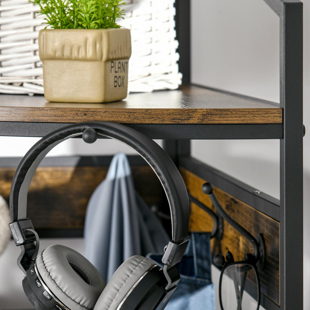 Sorgen Sie mit dem Garderobenständer für Ordnung im Eingangsbereich. Durch die Doppelhaken findet jede Jacke, jeder Mantel und jeder Schal seinen Platz und passt mit seinem kantigen Design in jeden Raum. Es gibt eine praktische Bank mit Schuhregal, damit Sie bequem sitzen können, wenn Sie Ihre Schuhe an- und ausziehen müssen. Diese aus Stahl und Holz im Industriestil gefertigte Flurgarderobe ergänzt eine Vielzahl von Einrichtungsstilen.