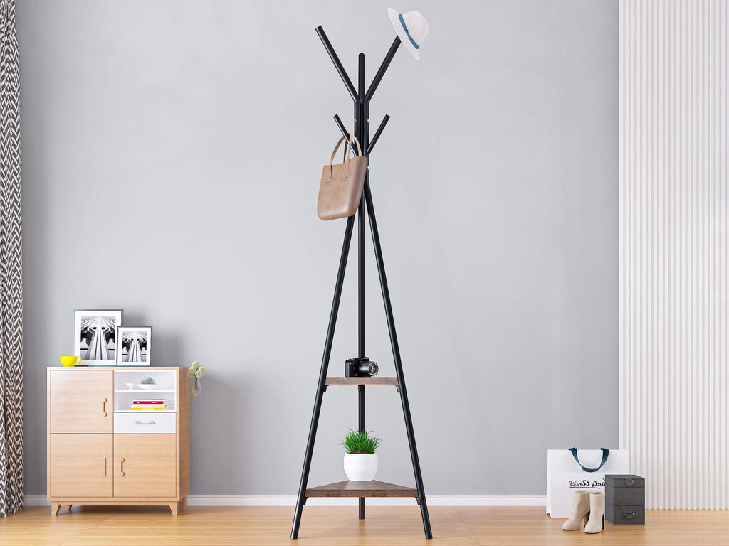 Garderobenständer 2 Ablagen 41,5x50x180 cm in Stahl und MDF Lenox Schwarz/Walnuss