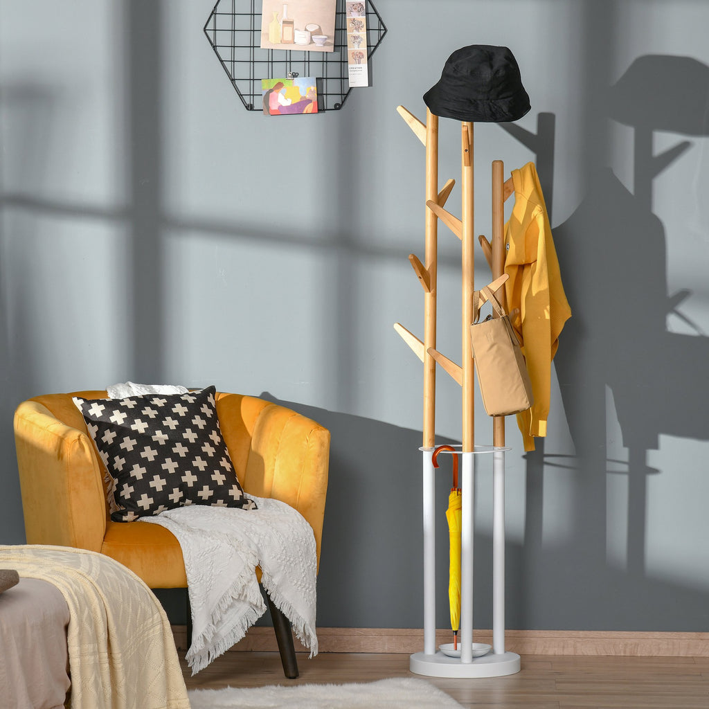 Dieser freistehende Kleiderständer bietet Ihnen einen eleganten Ständer zum Aufhängen Ihrer Mäntel, Schals, Taschen, Hüte und anderer Accessoires. Sie kombiniert eine freistehende Struktur mit einem kompakten und modernen Design, das es Ihnen ermöglicht, die Garderobe in jedem Raum zu platzieren und sich dabei unaufdringlich an Ihre Einrichtung anzupassen. Ausgestattet mit 13 Haken und einem zentralen Schirmhalter bietet er Ihnen allen Platz, den Sie zum Aufhängen Ihrer Essentials benötigen.