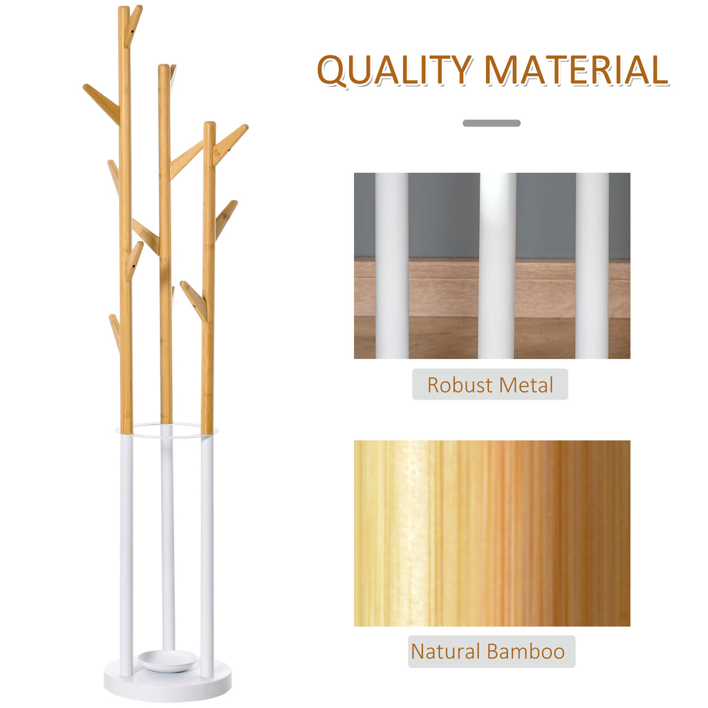 - ELEGANT: Die weiße Metallstruktur mit den natürlichen Bambusarmen macht die Garderobe originell und elegant. Die perfekte Ergänzung für Ihre Wohnkultur.