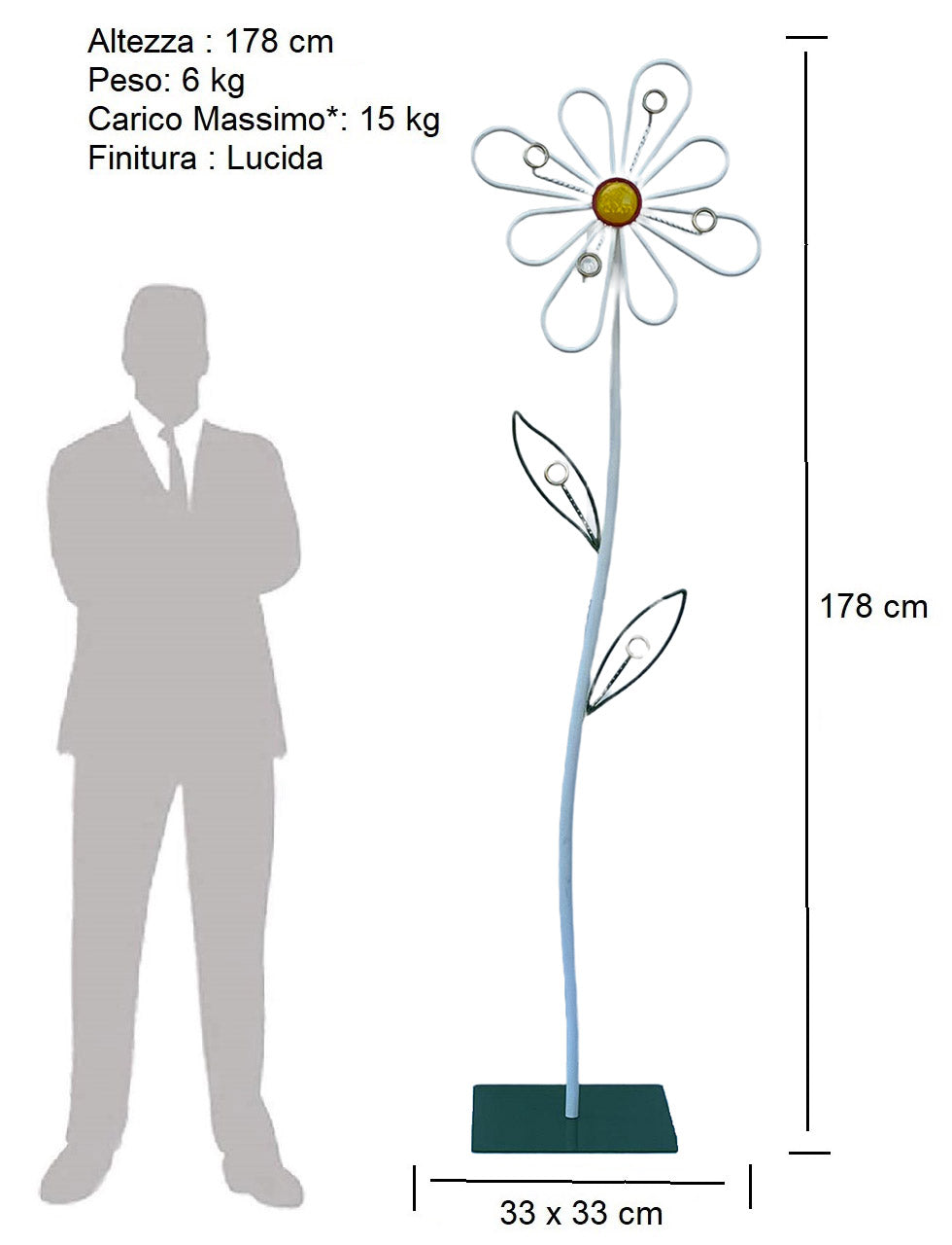 Garderobenständer Margherita aus weißem Schmiedeeisen 33x33x178 cm