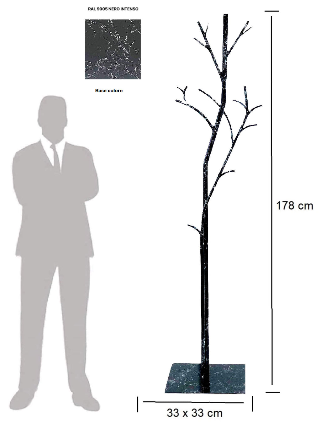 Garderobenständer 33 x 33 x 178 cm in Schmiedeeisen-Plane mit schwarzem Marmoreffekt