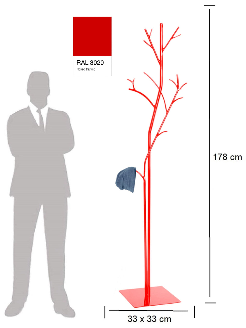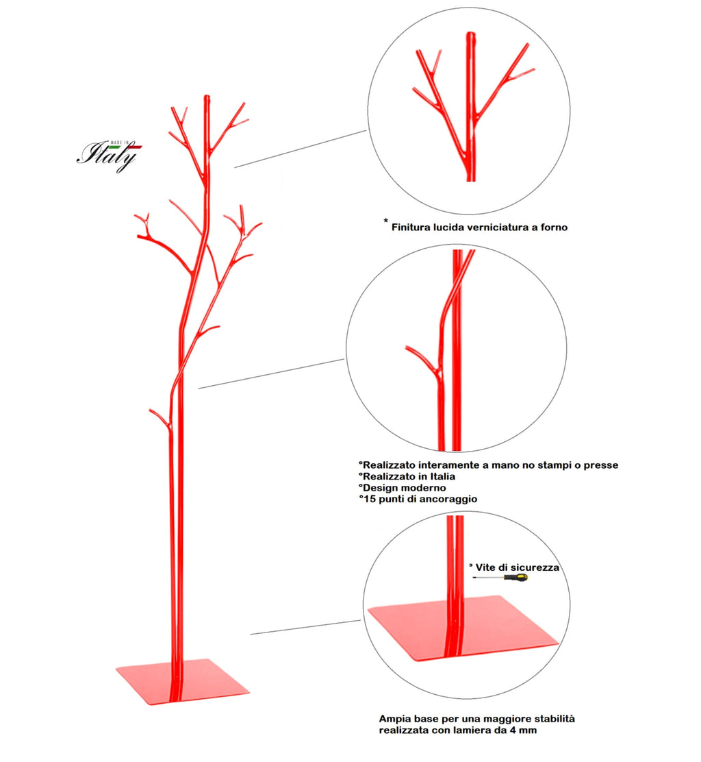 Garderobenständer aus Schmiedeeisen 33x33x178 cm Vasconi Platano Rosso