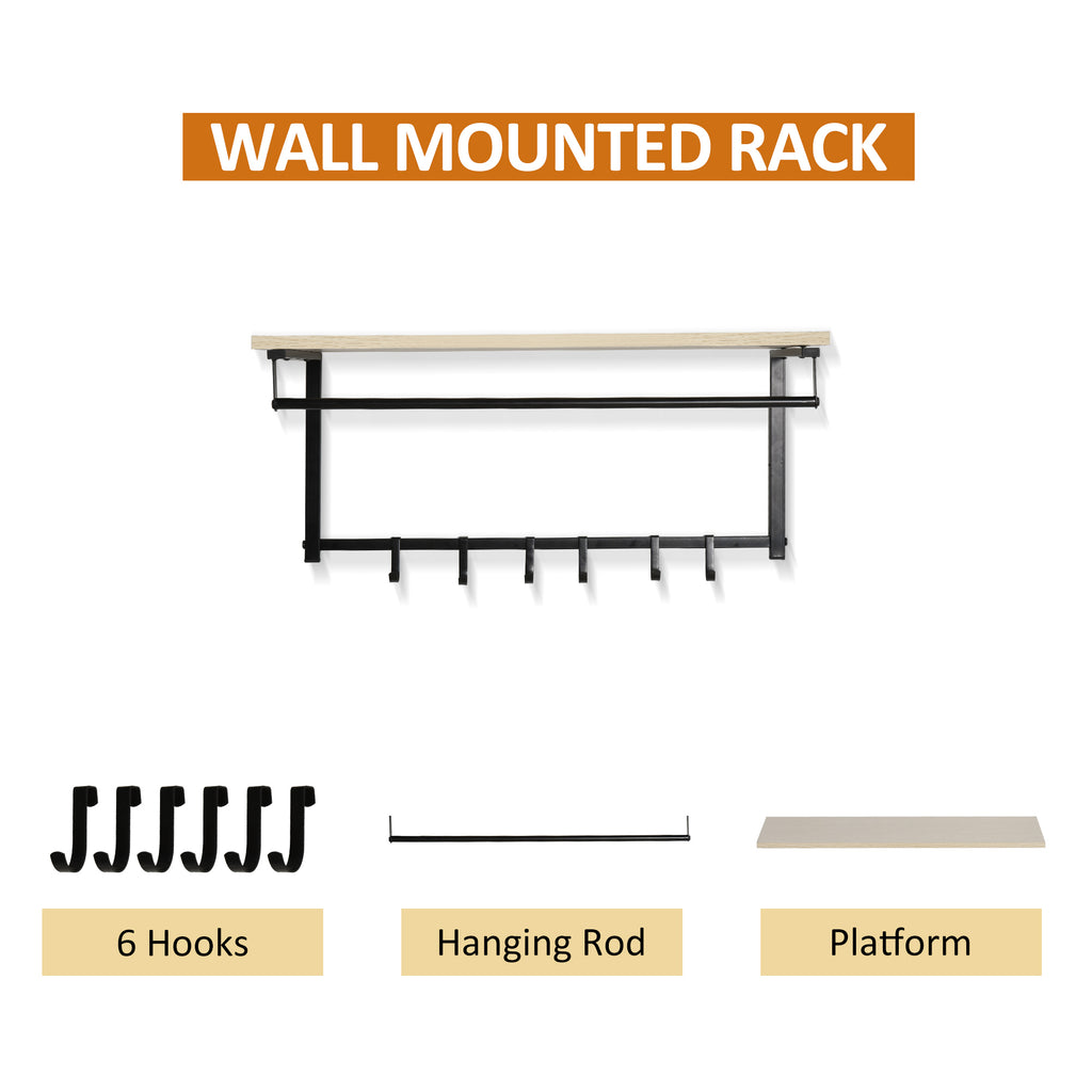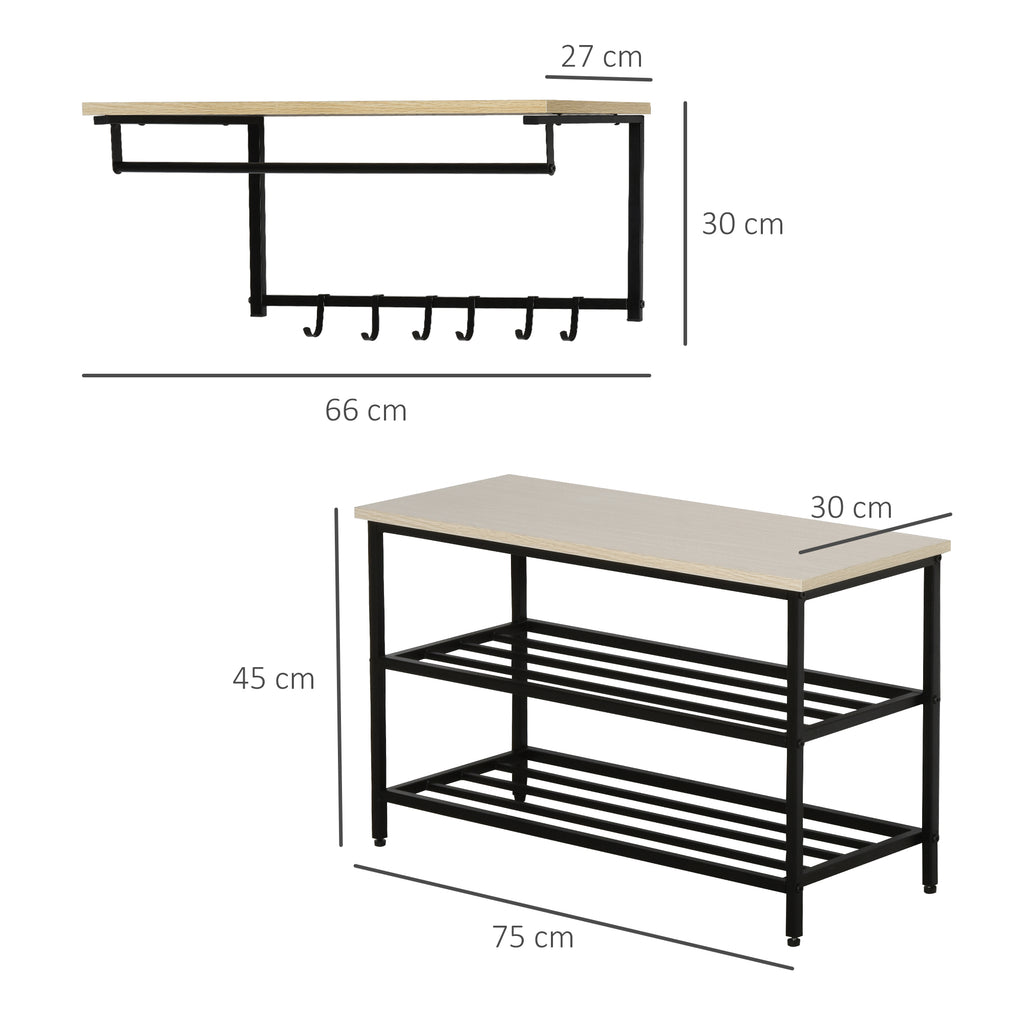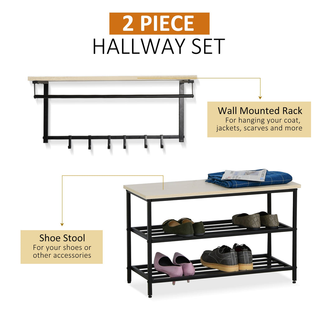 Kleiderbügel- und Schuhregal-Set, bringen Sie Ihre Mäntel, Jacken, Schals und andere Accessoires in Ordnung! Aus Spanplatte mit Melaminoberfläche und Metallrahmen, sehr langlebig und modern. Kleiderständer mit 6 Haken, Regal und Schuhregal mit 3 Regalen erfüllen alle Ihre Bedürfnisse.
