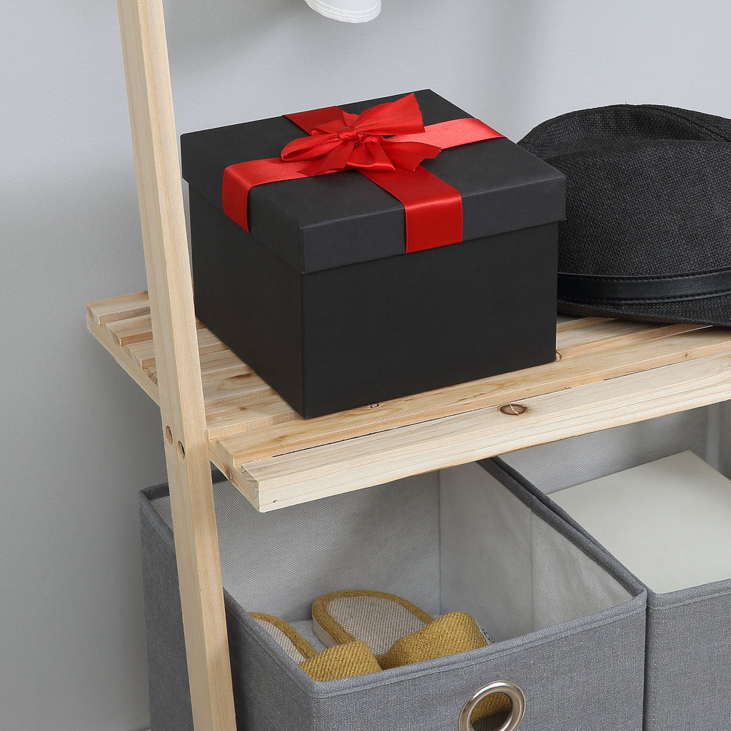 Halten Sie Mäntel, Kleider und Taschen mit der Garderobe immer in Ordnung. Es verfügt über 4 Haken und 3 Lattenroste sowie 2 praktische Stoffkörbe, in denen Sie alles ordentlich verstauen können. Die Garderobe ist mit einem Kippschutz ausgestattet, der für Sicherheit und optimale Stabilität sorgt. Der rustikale Stil mit unlackierter Naturholzstruktur verleiht jedem Raum eine originelle Note. Wählen Sie es für den Eingang, das Schlafzimmer oder das Wohnzimmer!