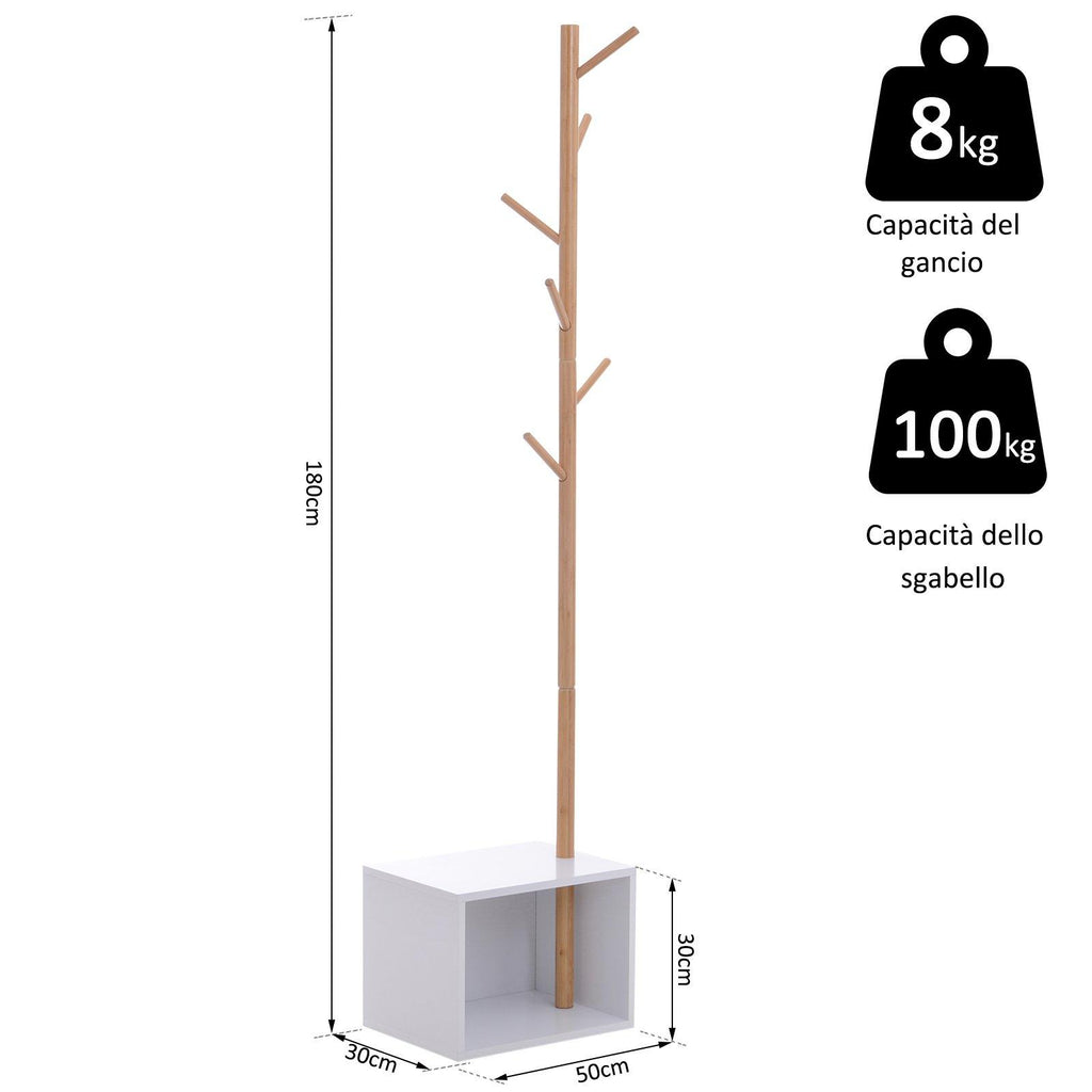 Schuhregal mit 6 Haken aus weißem Bambus 50x30x180 cm