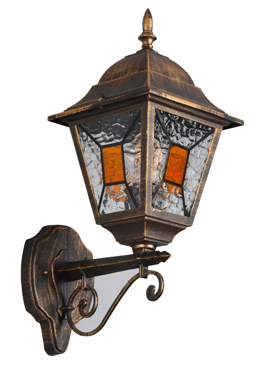 Imperia Applique Da Esterno Up 4 Lati Fusione di Alluminio Ruggine e Vetro Verniciato Effetto Ghiaccio Ed Inserto Giallo H. 45,5Cm Ip44