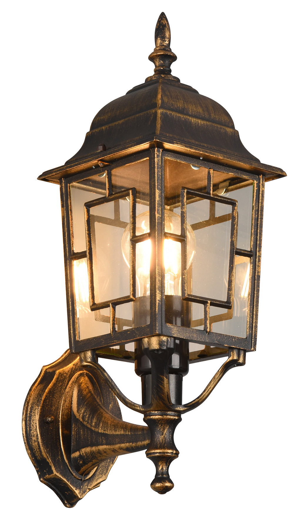 Volturno Applique Da Esterno Up 4 Lati Fusione di Alluminio Ruggine con Decoro in Fusione Sul Vetro e Vetro Trasparente H. 41Cm Ip44