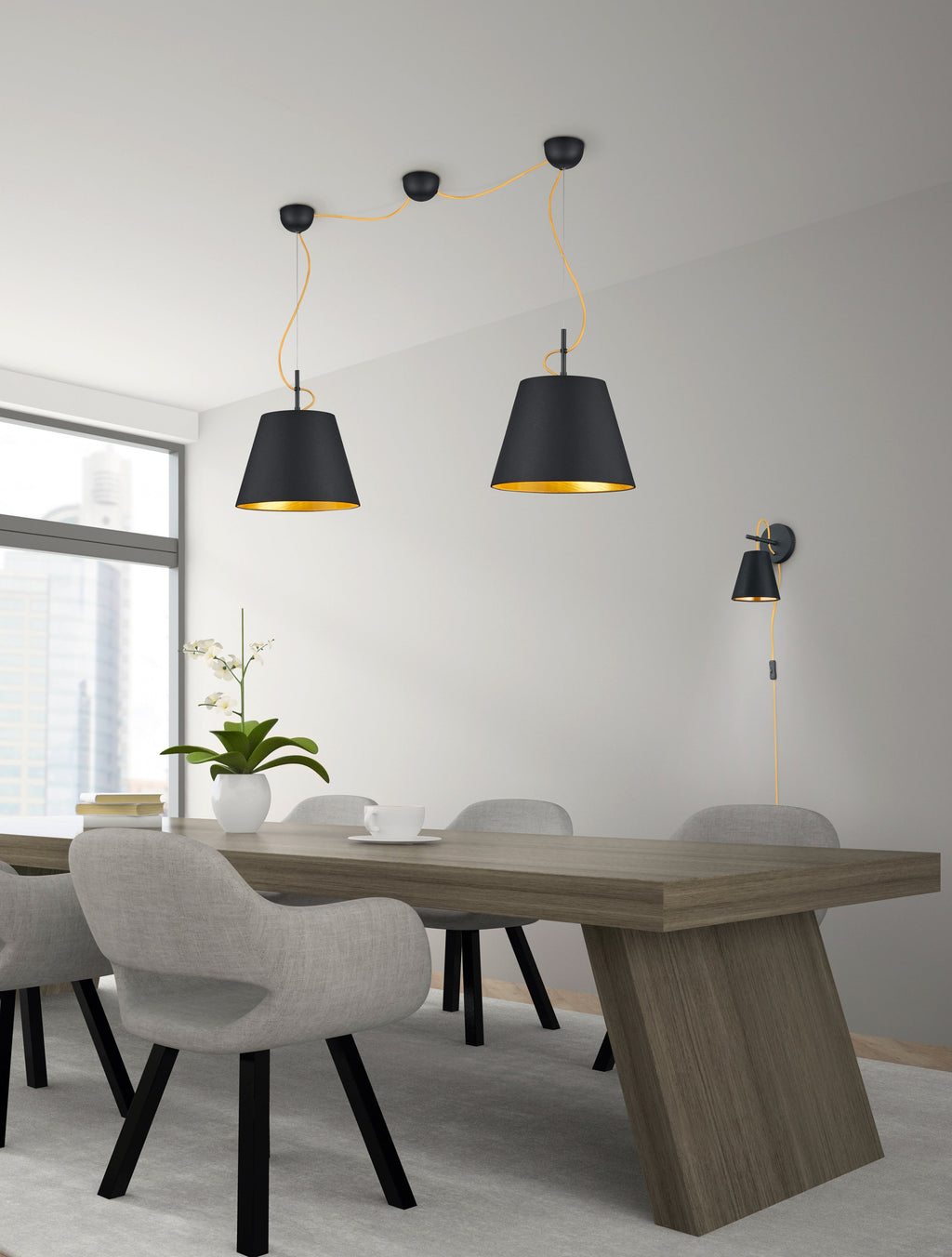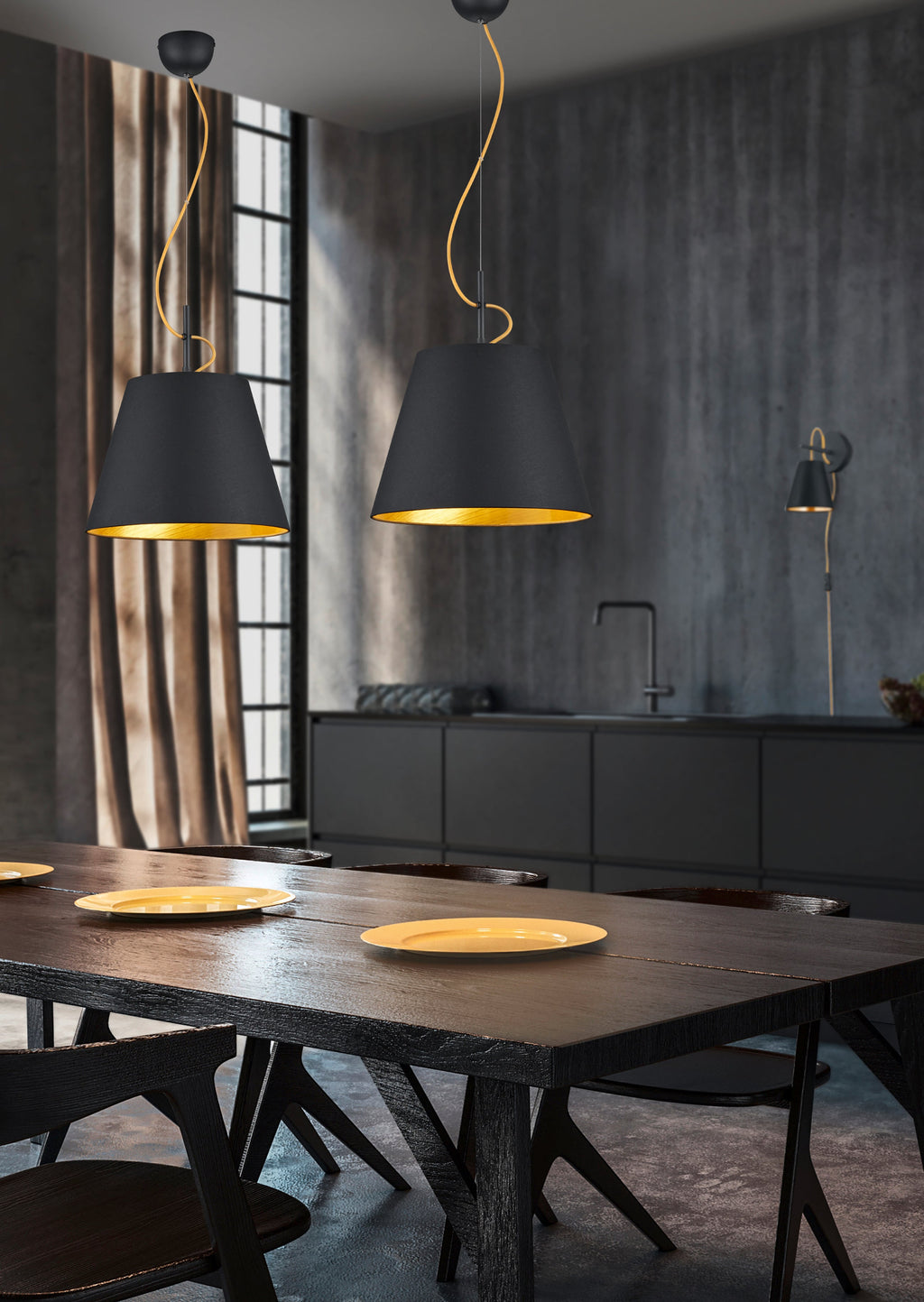 Andreus Applikation Diffusor Konischer Stoff Außen Schwarz Innen Gold D.15Cm, H.26,5Cm