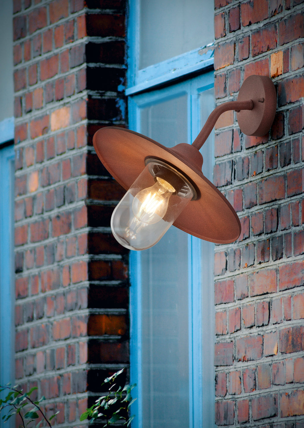 Brenta Outdoor Down Wandleuchte Aluminiumguss lackiert Rosteffekt mit transparentem Glasdiffusor IP44 H.35Cm