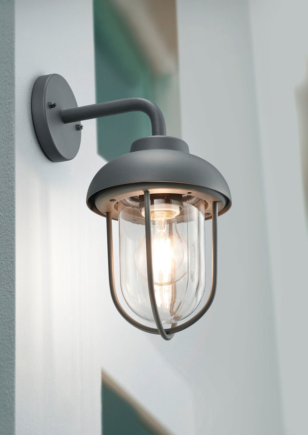 Duero Outdoor Down Wandleuchte Anthrazit lackierter Aluminiumguss mit transparentem Glasdiffusor IP44 H.32Cm