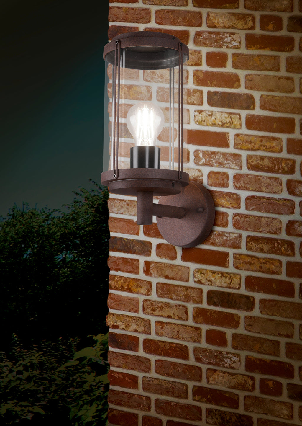 Tanaro Außenwandleuchte Aluminiumguss Rosteffekt mit transparentem Glasdiffusor IP44 H.31Cm