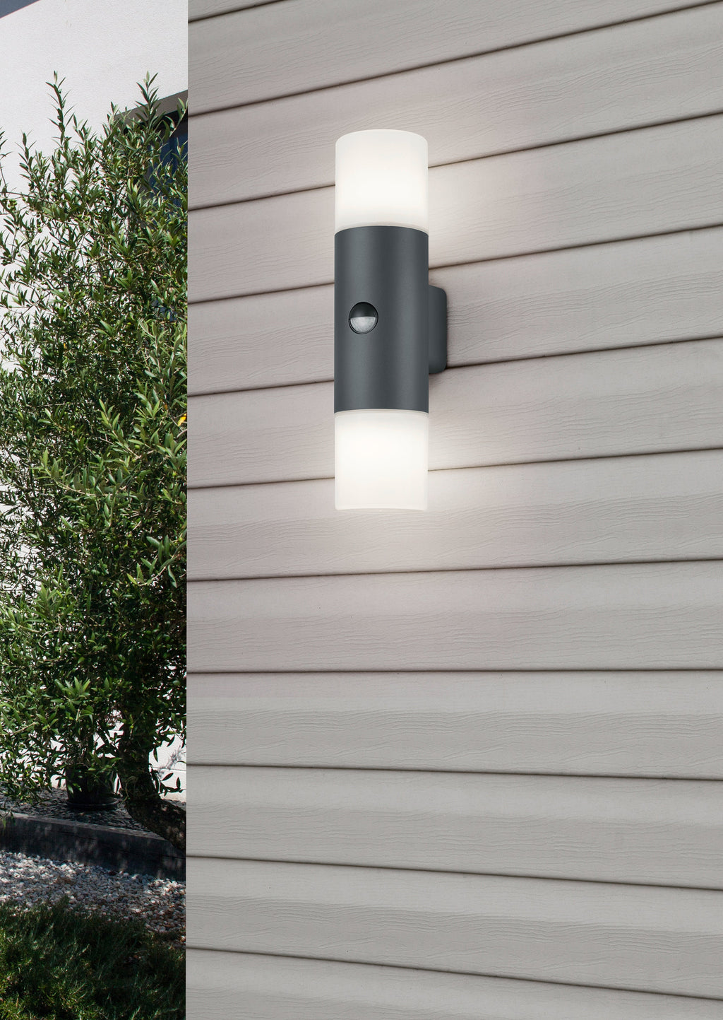 Hoosic LED-Wandleuchte Zylinder Anthrazit und Weiß Doppeldiff. Mit Bewegungssensor H.33 cm