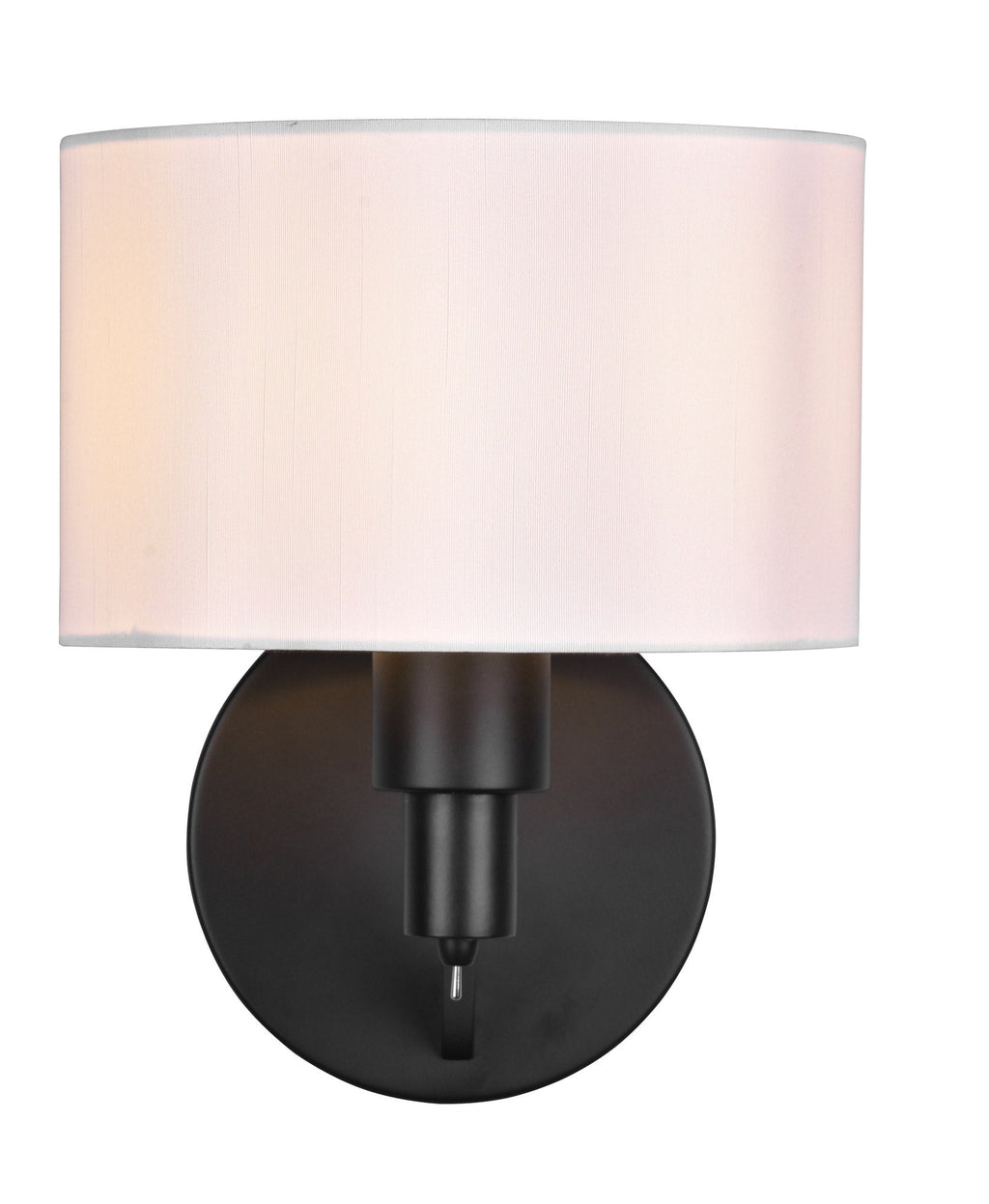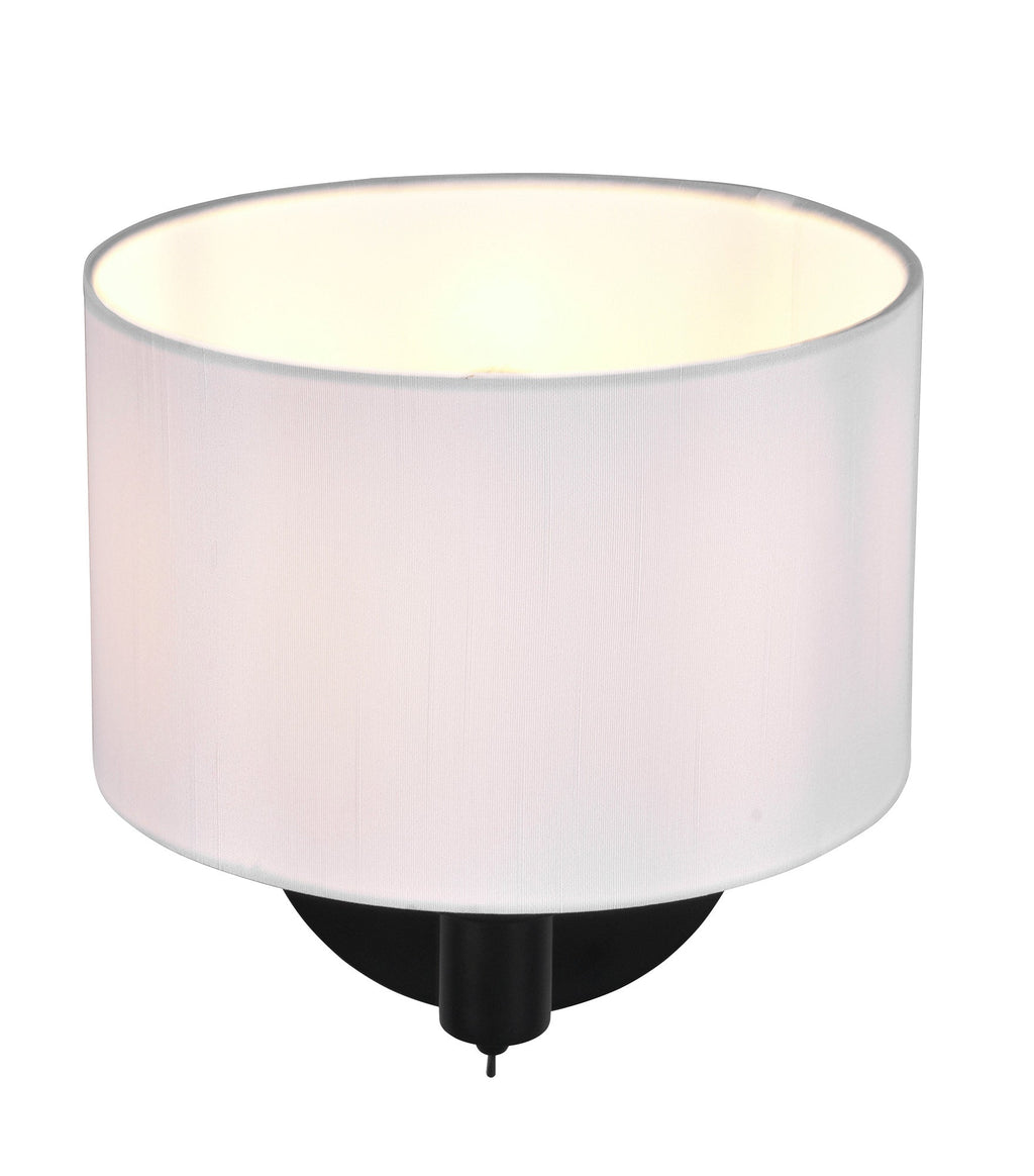 Cassio Applique Metallo Nero con Paralume Bianco Ed Interruttore H. 27,9Cm