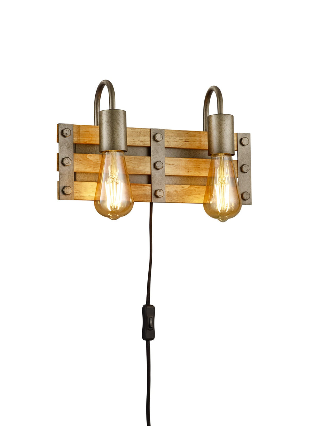 Khan Applique 2 Luci Legno e Metallo Anticato L.35Cm