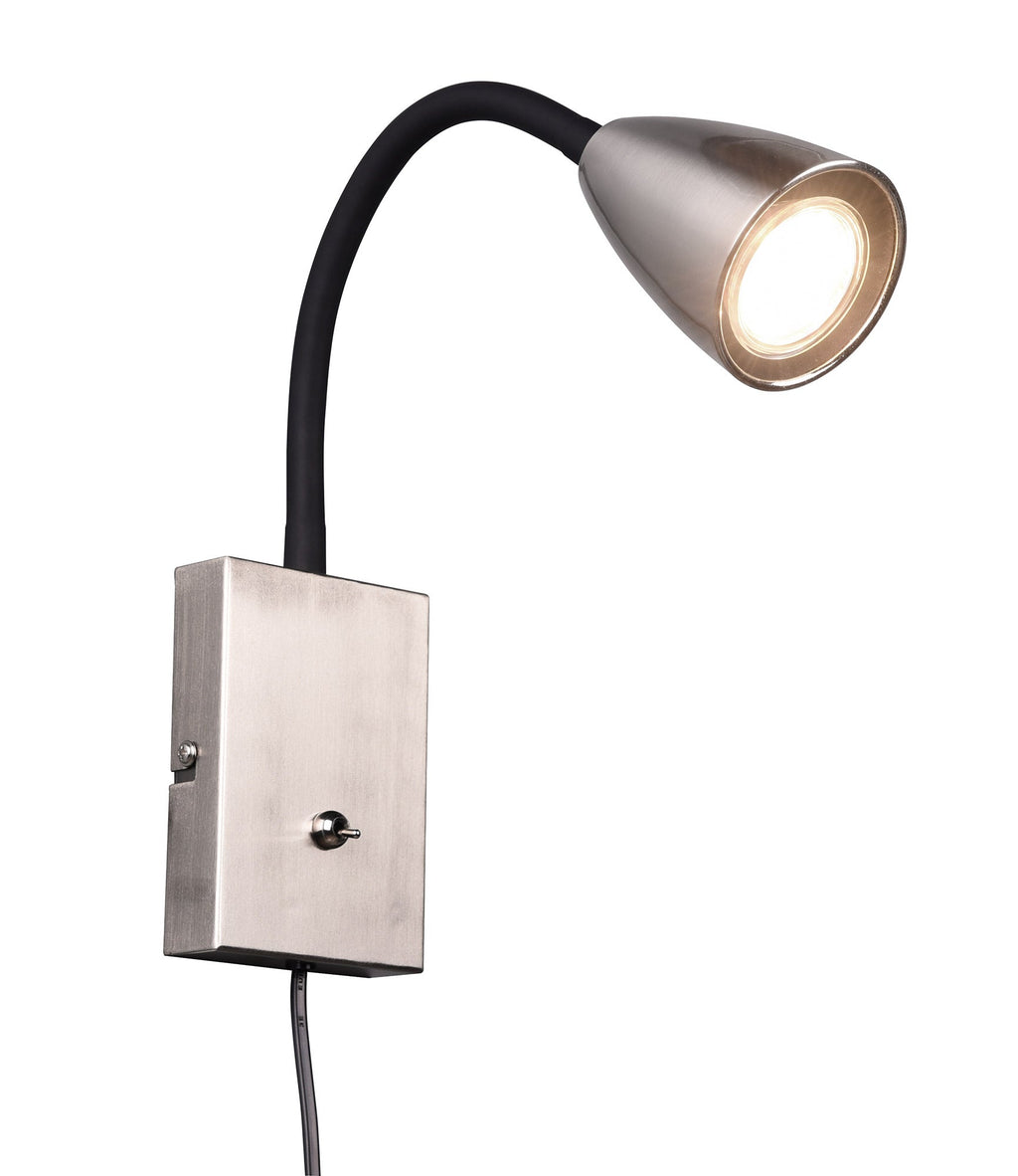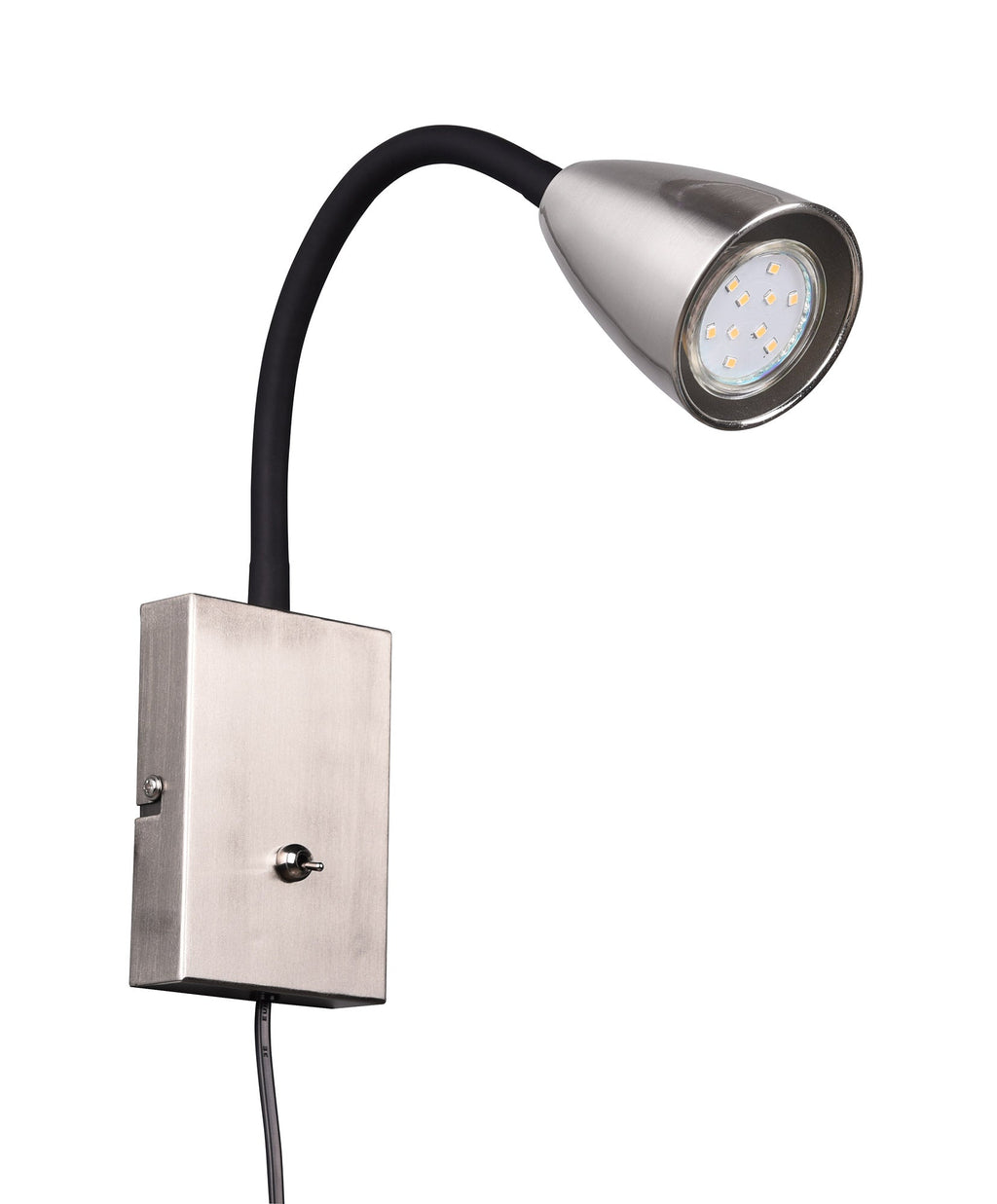 Wanda Applique Flessibile con Interruttore Metallo Acciaio e Nero H. 24Cm