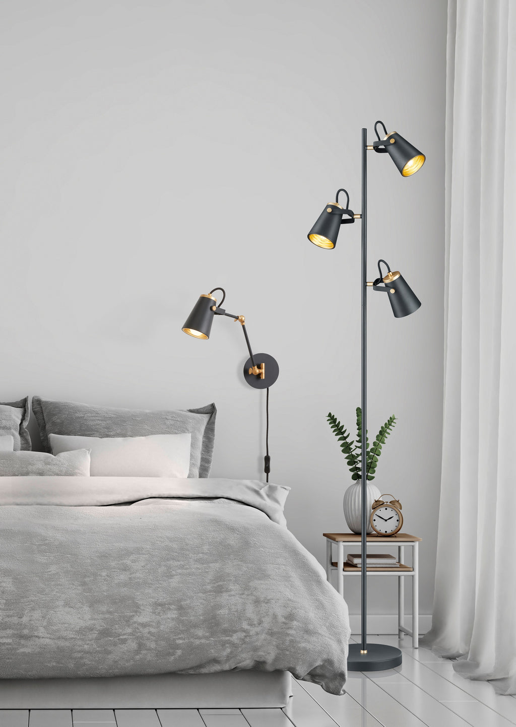 Edward Wandleuchte Verstellbarer Diffusor aus mattschwarzem Metall und Gold innen Prof. Max. 50 cm