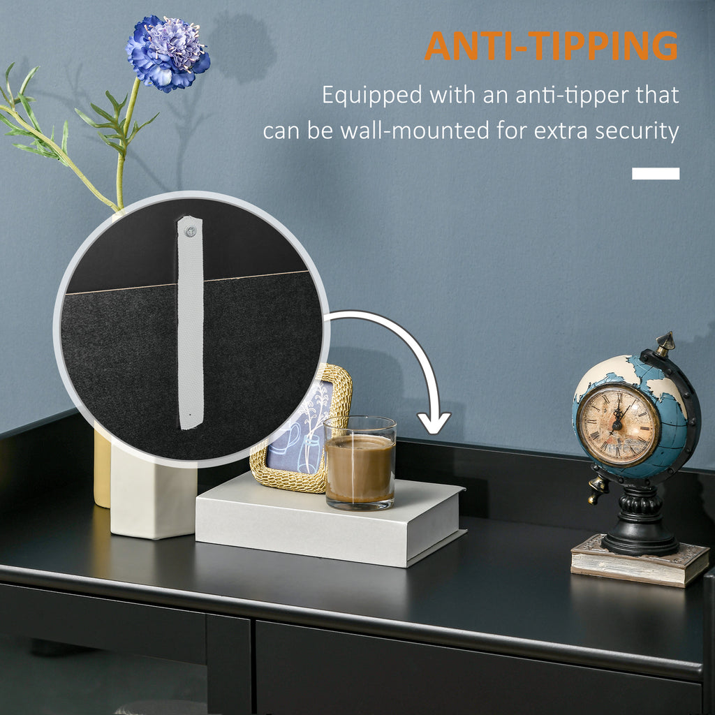 - PRAKTISCH: Natürlich soll das Zuhause ein sicherer Ort für alle sein. Aus diesem Grund ist ein Anti-Kipp-Gurt im Lieferumfang enthalten, mit dem Sie den Wohnzimmerschrank an der Wand befestigen können. Dieses vielseitige Möbelstück besteht aus MDF-Platten und stabilen Holzbeinen für eine einfache Reinigung