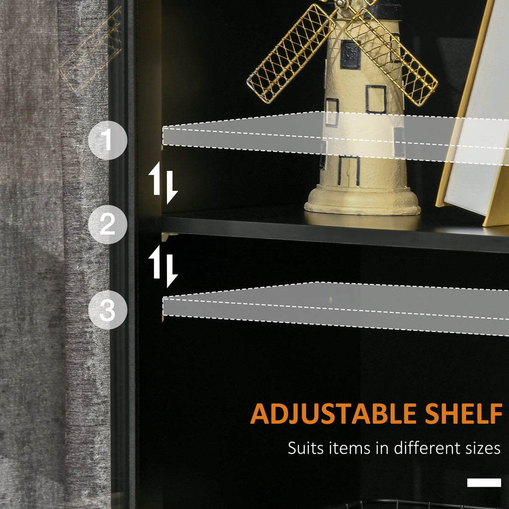 Schrank 2 Türen mit verstellbarem Regal und offenen Flächen 80 x 40 x 94,3 cm aus MDF und schwarzem Holz
