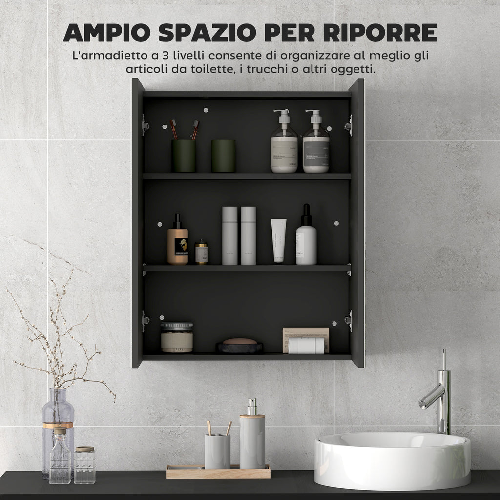Armadietto a Specchio per Bagno 60x15x75 cm Struttura in MDF Nero