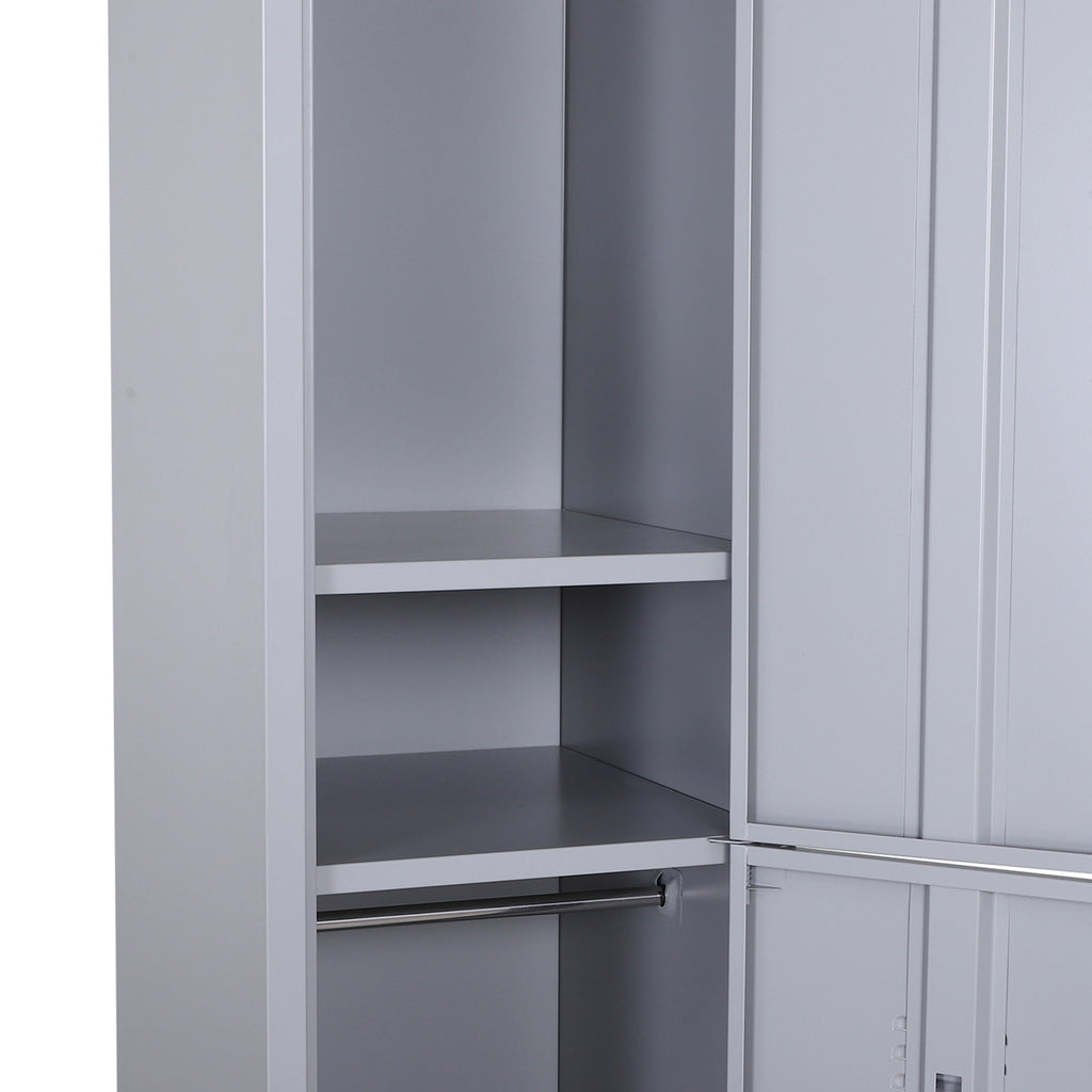 Garderobenschrank Stahl 4 Einlegeböden 2 Türen mit Sicherheitsschloss Grau 38x46x180 cm