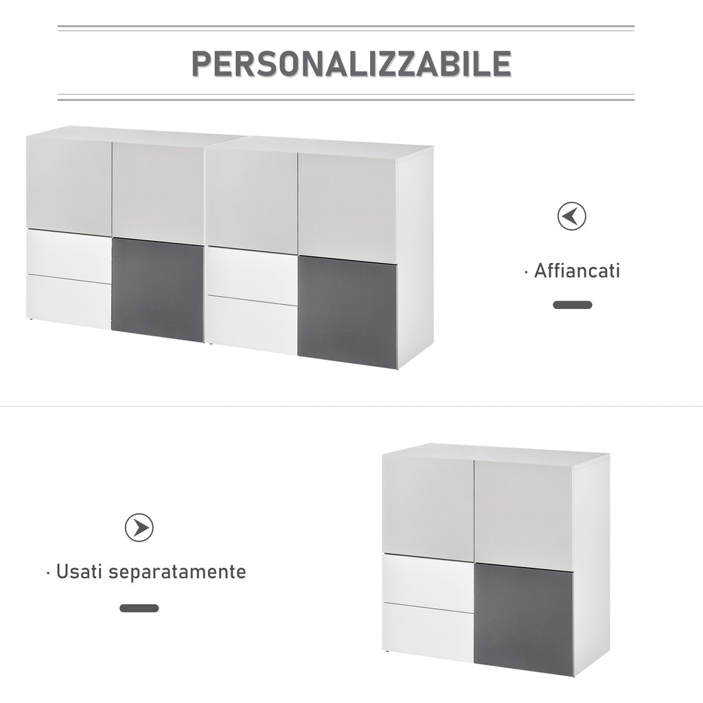 Mehrzweckschrank 2 Schubladen 3 Türen 80 x 38 x 80 cm aus grauem und weißem MDF
