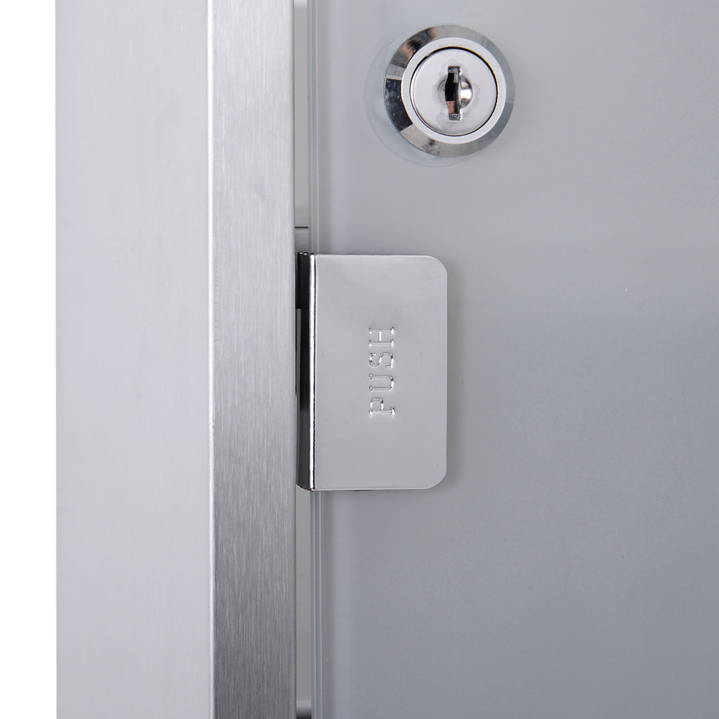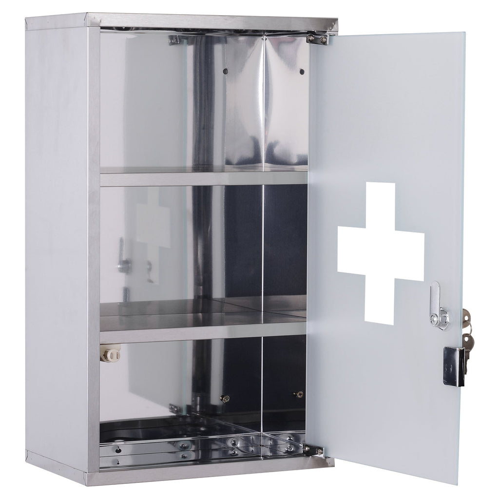 Elegant gestalteter Medizinschrank aus Edelstahl, eine Kombination aus Funktionalität und Schönheit.