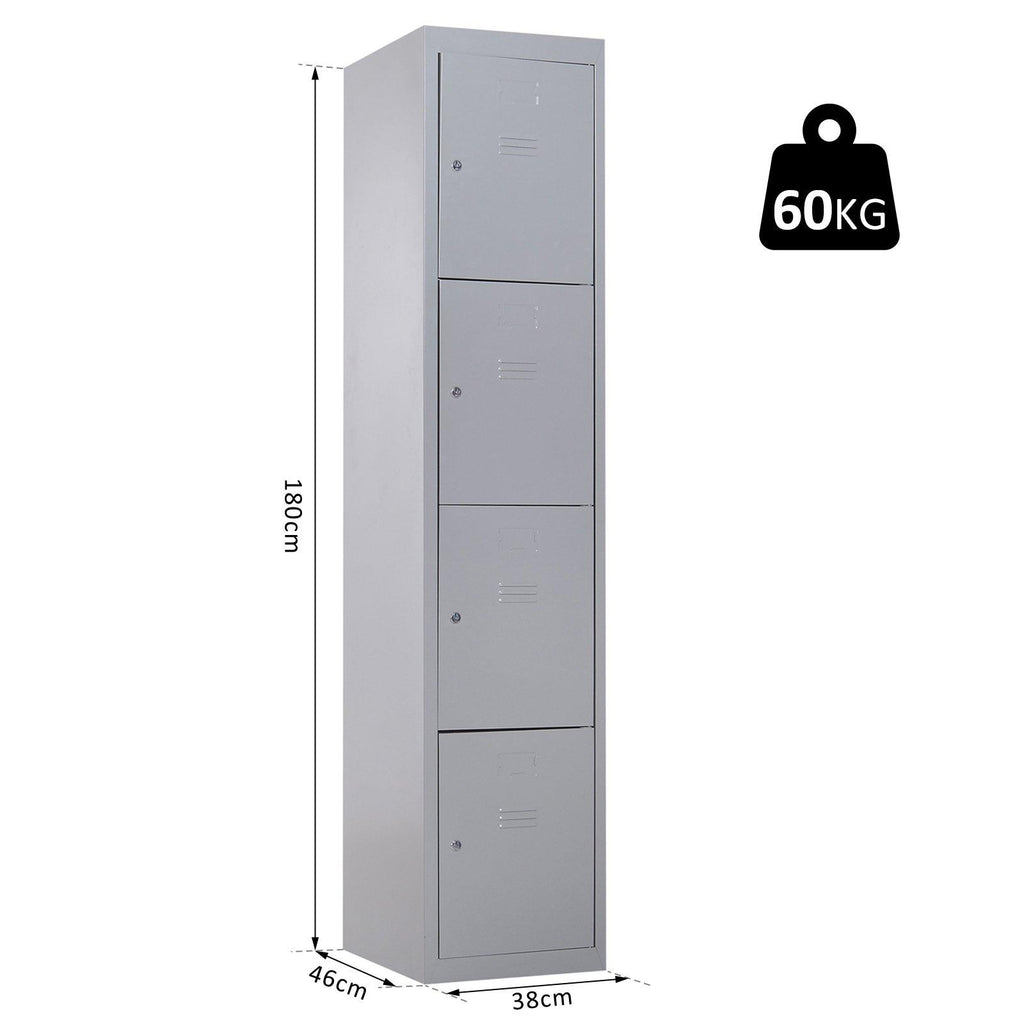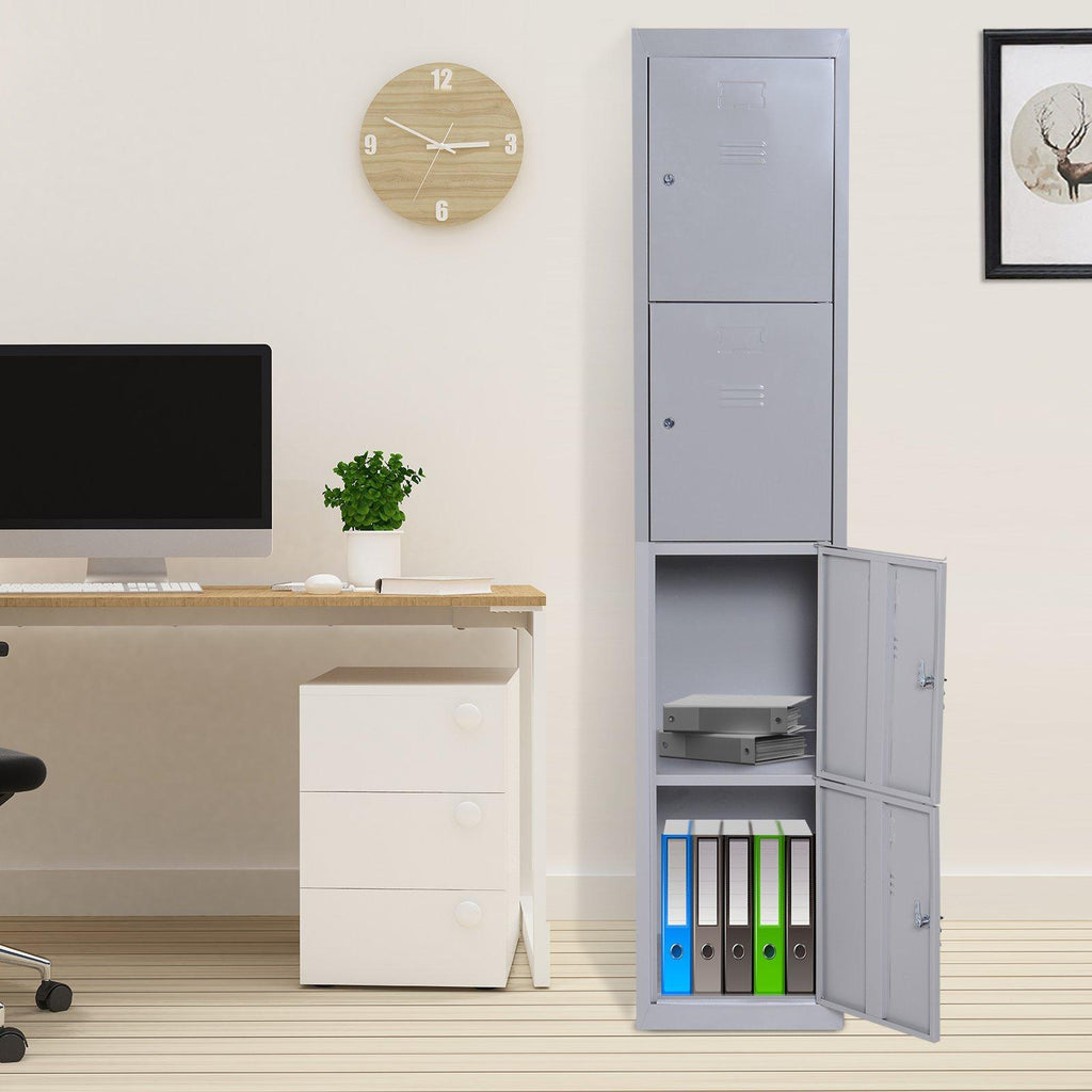 Dokumentenschrank 4 Regale mit Sicherheitsschloss aus grauem Stahl 38x46x180 cm